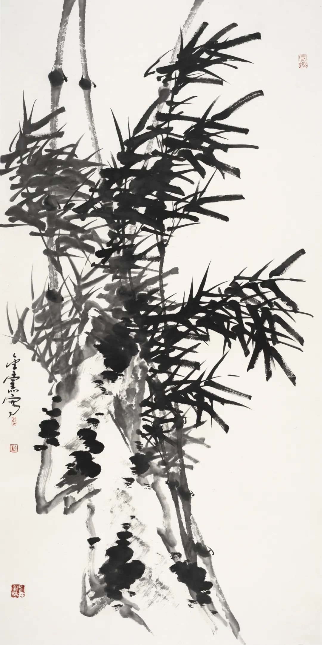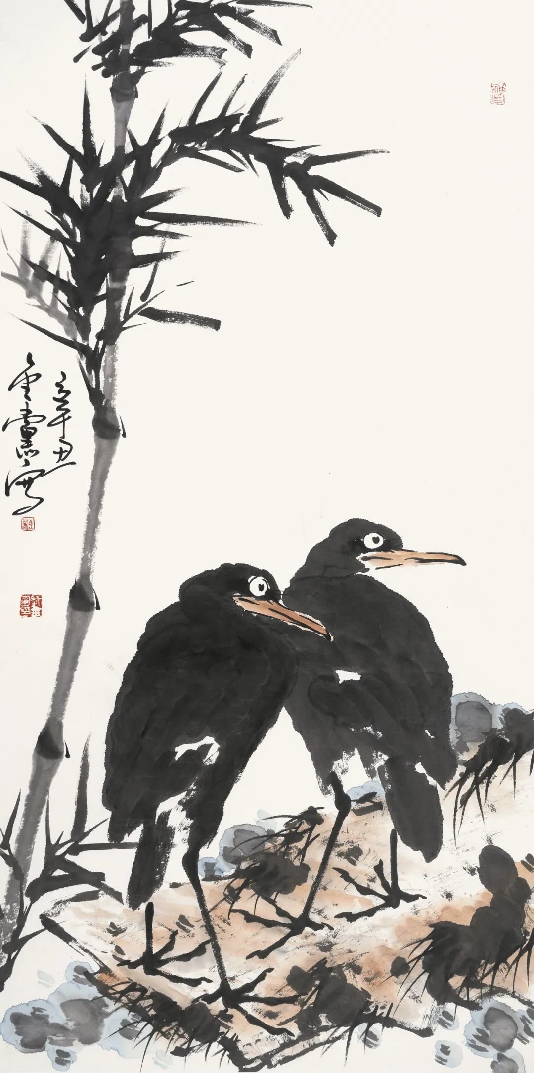 《墨竹双鹭》138x69cm