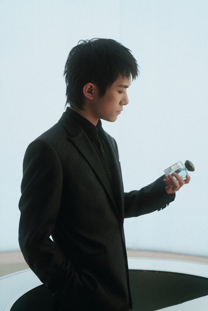 2022年12月22日,深圳,易烊千玺黑色西装造型出席阿玛尼彩妆全球旗舰店开业活动。