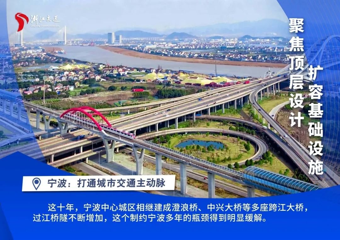 浙江坚持以项目牵引,通过杭州钱塘快速路、宁波机场快速路、温州瓯海大道等一大批快速路项目建设,十年间全省快速路里程增至789公里。