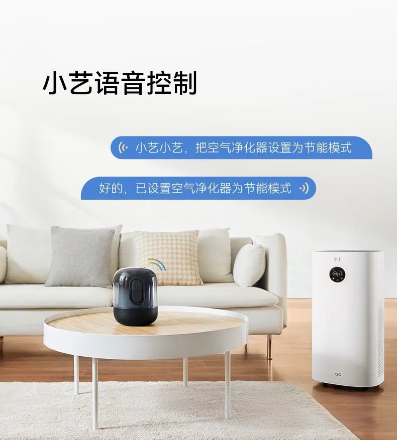 此外,用户还可以使用语音向它发放指令。通过使用小艺语音助手声控,说句话就能够让华为智选 720 智能空气净化器 3s 完成各种复杂操作。