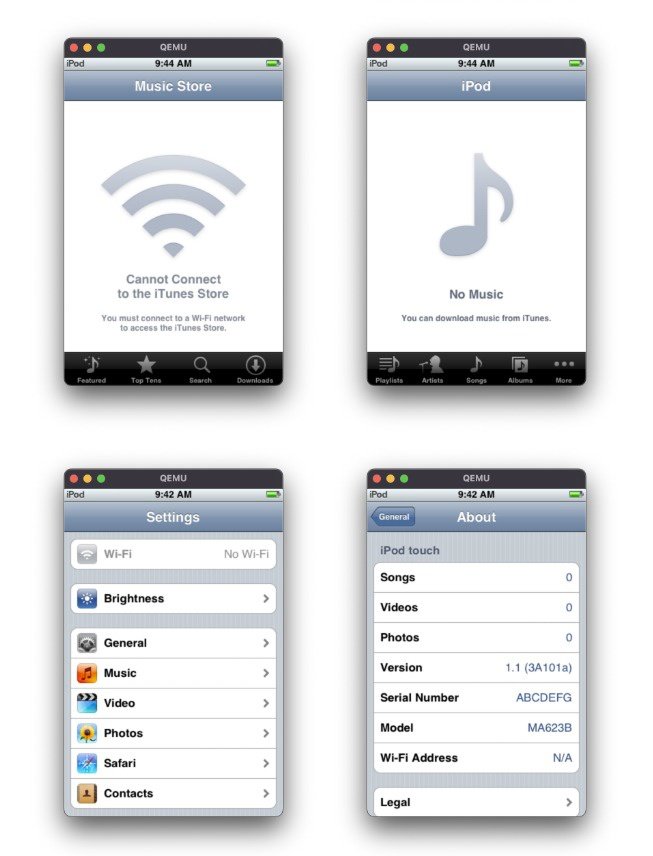 开发者 Martijn de Vos(网名 devos50)耗时 1 年多时间,通过大量逆向开发工程来模拟 2007 年苹果为 iPod touch 发布的初代 iPhone OS。他表示模拟多点触控支持和其它硬件组件耗费了大量的精力。