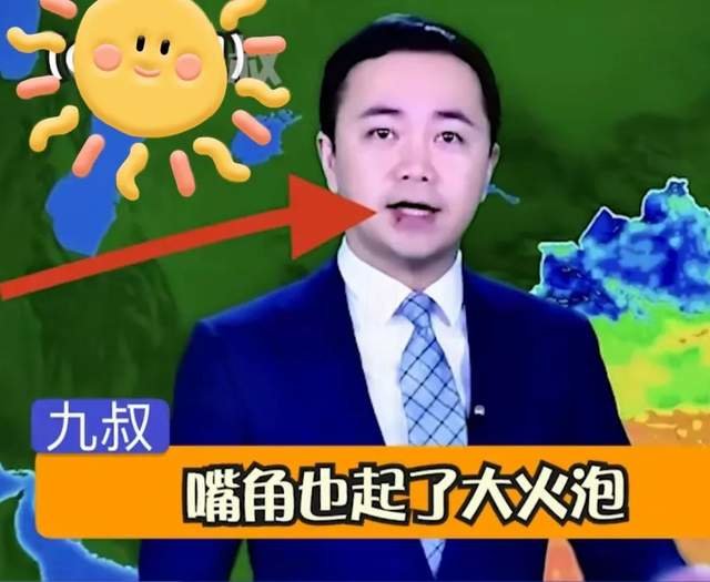 央视“天选打工人”的主持人除了康辉和郑丽外,还有天气预报的主持人冯殊,也是“带伤”工作,嘴上的大泡清晰可见。