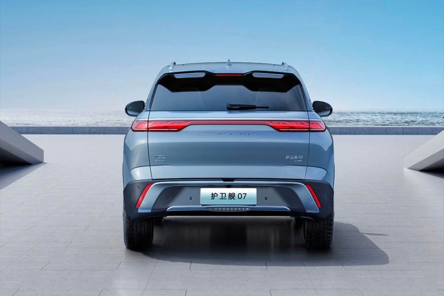 比亚迪护卫舰07搭载的1.5T发动机+电动机组成的插混系统,发动机最大功率102kW,最大扭矩231N·m,有着DM-i和DM-p可选,驱动分别为前置单电机和双电机四驱版,电机总功率分别为145kW和295kW,总扭矩分别为316N·m和656N·m,NEDC纯电续航里程为100km、205km和175km,四驱版零百加速仅为4.7s,亏电油耗最低为5.8L,传动匹配的是E-CVT无级变速箱。