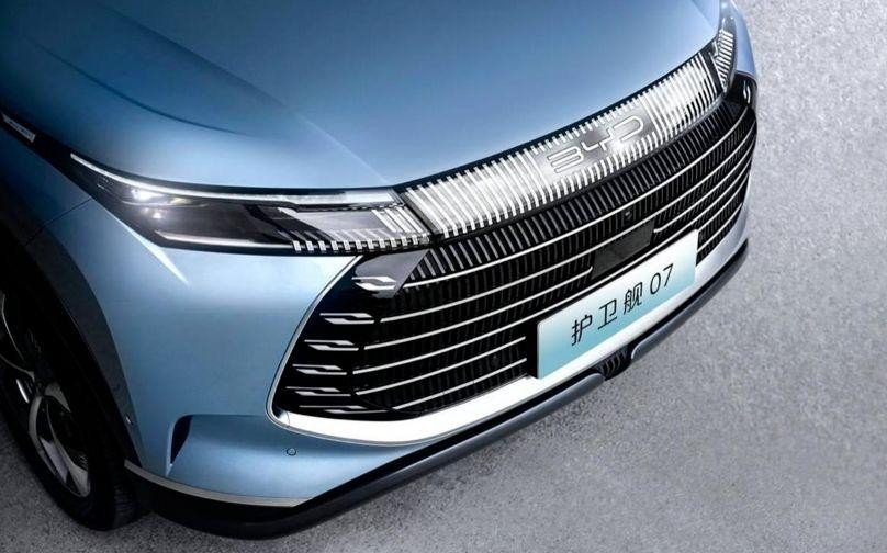 比亚迪护卫舰07前脸的进气格栅造型十分霸气,内部采用了直瀑式+平直镀铬饰条的设计,饰条延伸至两端还有着可发光的灯组,显得十分新颖。格栅上侧的灯带造型十分宽大,并且与前LED大灯组融为一体。前包围的流畅护板很具运动感。