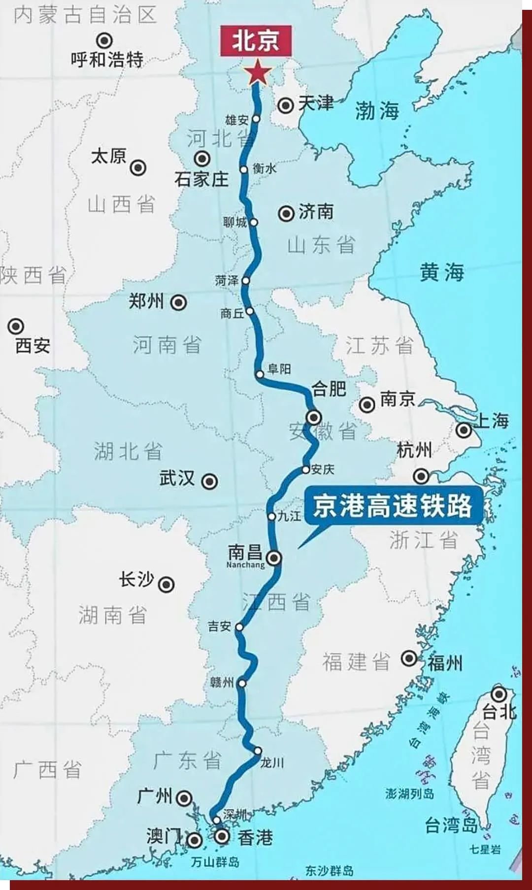 京港高铁线路示意图 图源:百度百科
