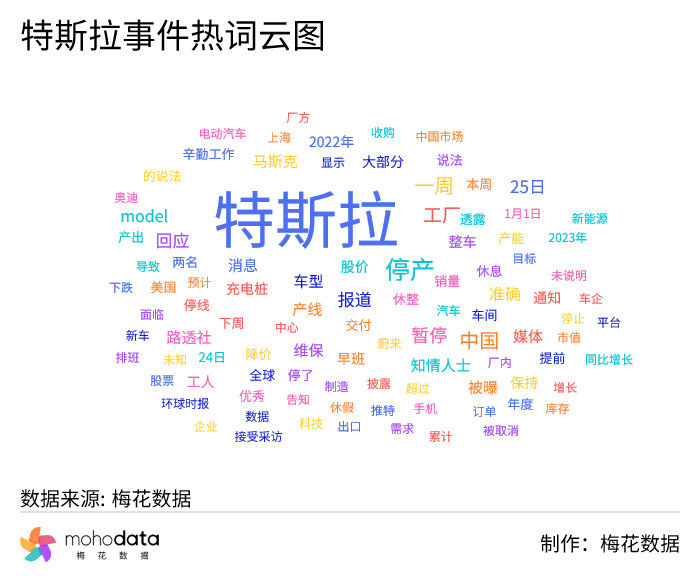 声量热词方面,热词云图如下所示,其中“停产”“一周”“中国”“工厂”“暂停”“25日”“产线”“维保”等词汇排名较前。