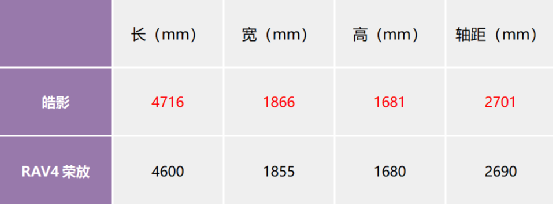 虽然官方给两款车定义为紧凑级SUV,但其实两者的定位都要比紧凑级要高。RAV4荣放和全新皓影都进行过加长,对比这两款车型的尺寸各有千秋。经过升级后的新一代皓影,长度增加82mm,轴距增加40mm,另外还推出了七座版供选择。相比RAV4荣放,全新皓影则是拥有更大的车内空间,7座的车内布局使得车内空间也更加灵活多变。