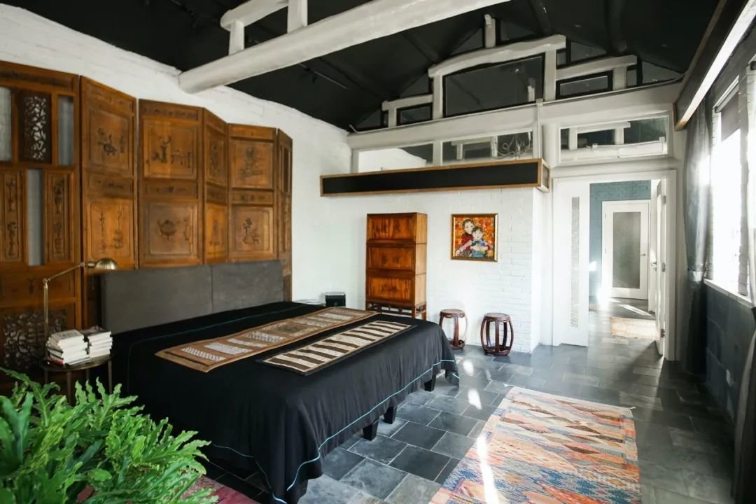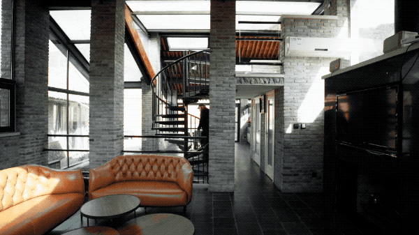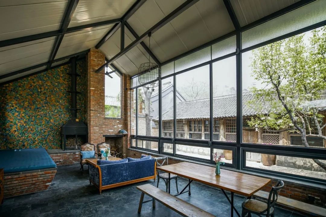这是唯一一栋没有新增建筑的房子,室外的院子也被完整保留了,只把室内的墙体和梁架做了加固,安装了推拉窗户,保证了通风。