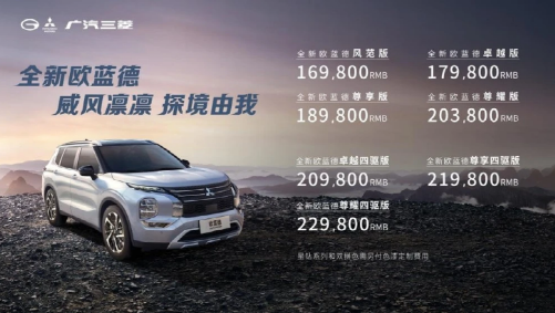 12月24日,广汽三菱全新欧蓝德正式登陆重庆,官方指导价为16.98-22.98万元,全系共推出7个版本,其中4款两驱车型和3款四驱车型。