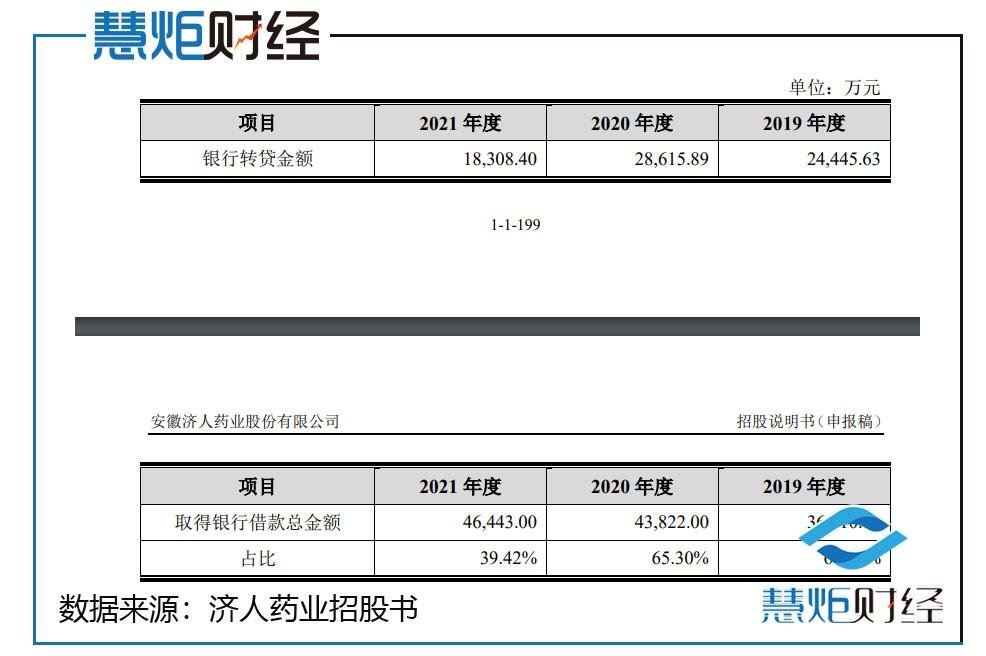 另外,招股书显示,报告期内,济人药业为满足贷款银行受托支付的操作要求,存在通过供应商、 员工、子公司等取得银行贷款的情况(以下简称“转贷”),报告期各期金额分别为 24,445.63 万元、28,615.89 万元和 18,308.40 万元,其中通过供应商、员工等非合并范围内主体的转贷金额分别为 17,105.63 万元、5,960.45 万元和 557.10 万元,通过子公司的转贷金额为 7,340.00 万元、22,655.44 万元和 17,751.30 万元。