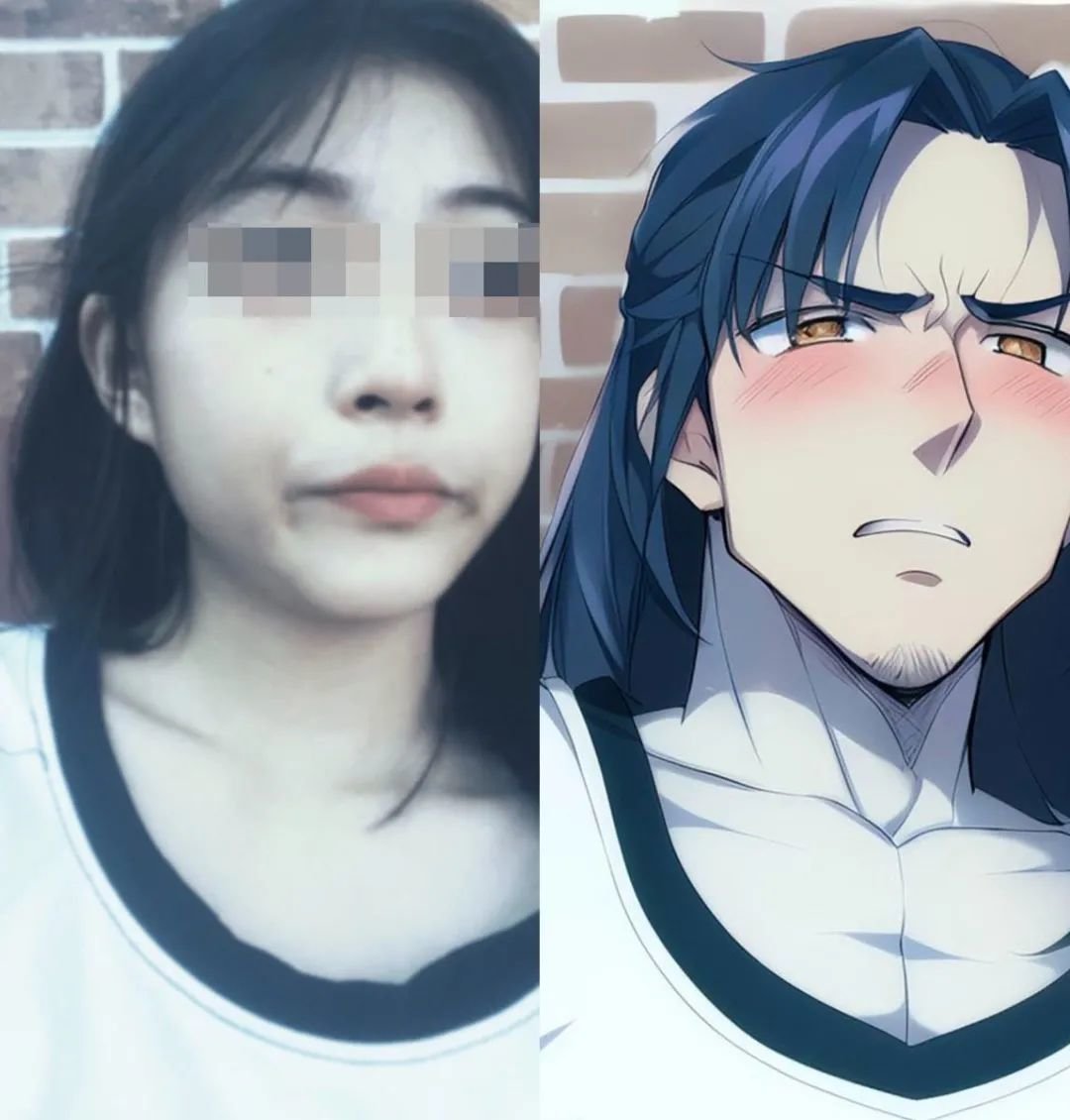 虽然AI自动加上了光环,蛋糕也变成了捧灯。整体来说,二次元化后的美女还是好看的。