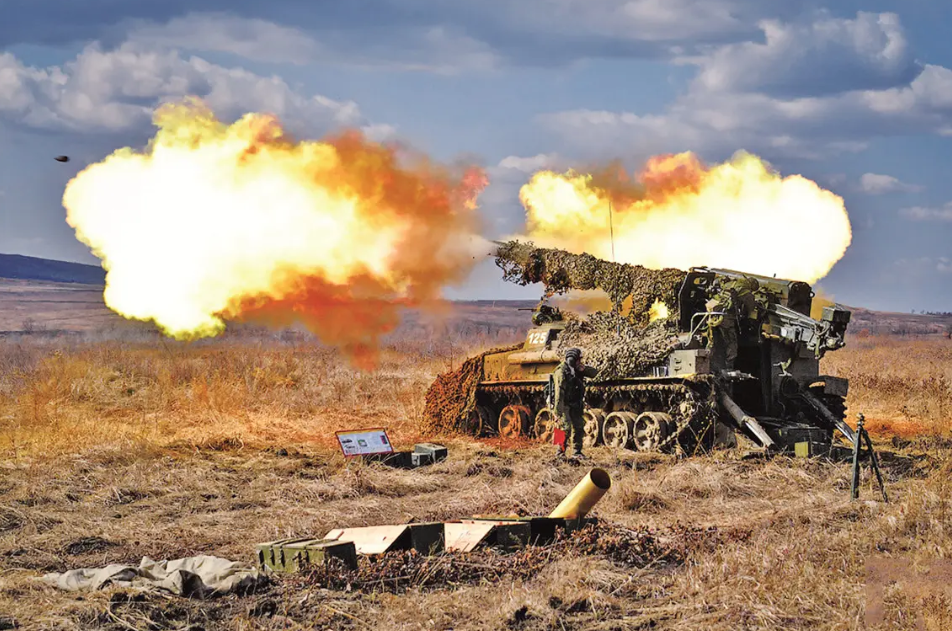 俄军大口径重炮轰击目标
