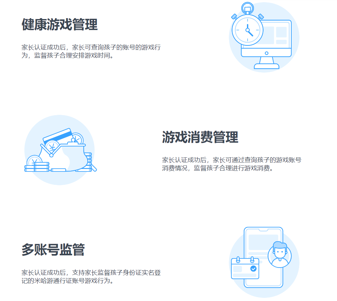 值得一提的是,如果账号成功申请变更为“未成年人”认证,家长们还可以进一步绑定家长账号和孩子账号,利用米哈游成长关爱平台随时监督、管理孩子的游戏娱乐时间及消费。