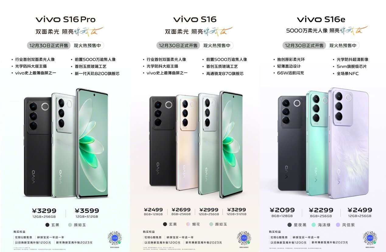12月26日,vivo S16系列预售已经开启,售价方面,vivo S16e 2099元起,vivo S16 2499起,vivo S16 Pro 3299元起。三款机型的价格在中端市场上非常有竞争力。作为vivo S系列最新一代产品,vivo S16从内到外都有令人眼前一亮的升级表现。