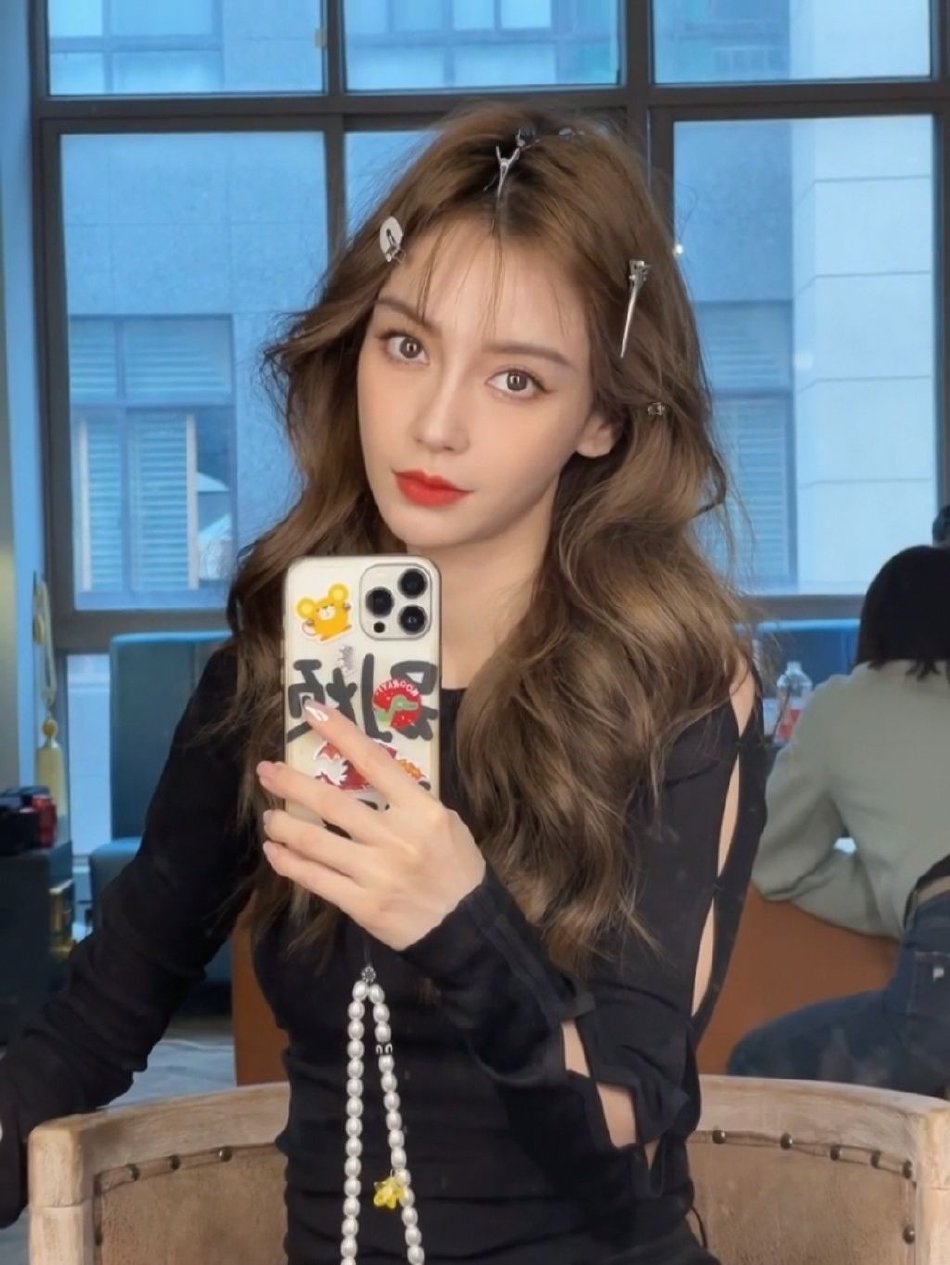 12月25日,Angelababy在社交平台上晒出对镜自拍美照,她一头金色大波浪卷发造型,五官精致好似洋娃娃。