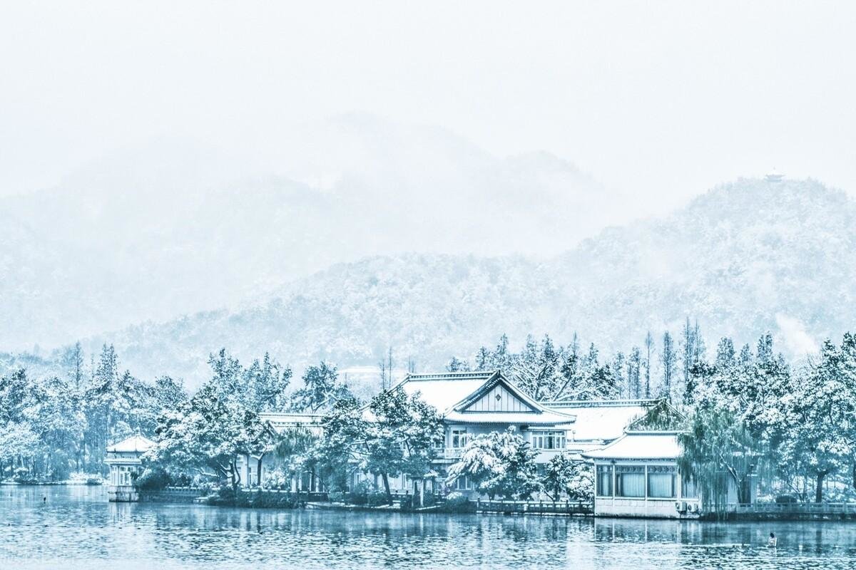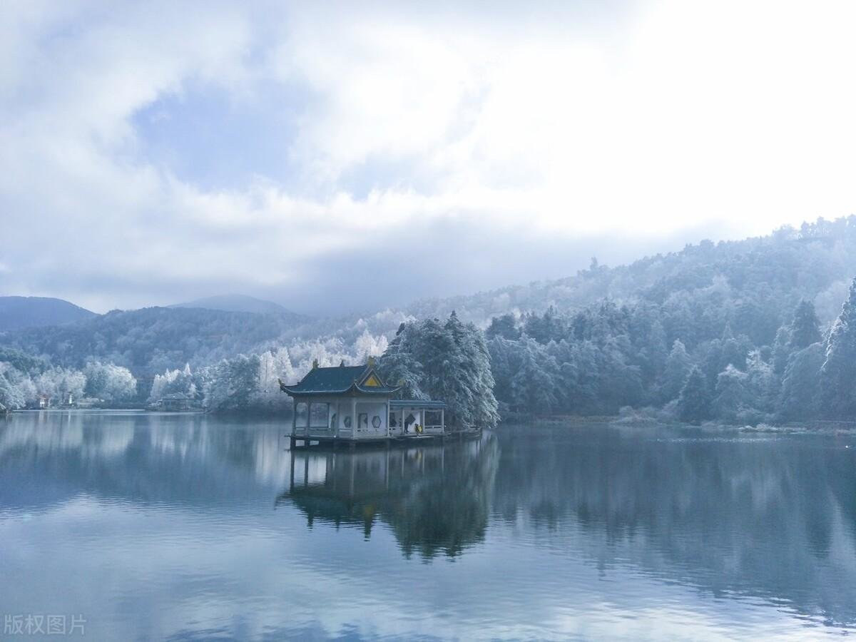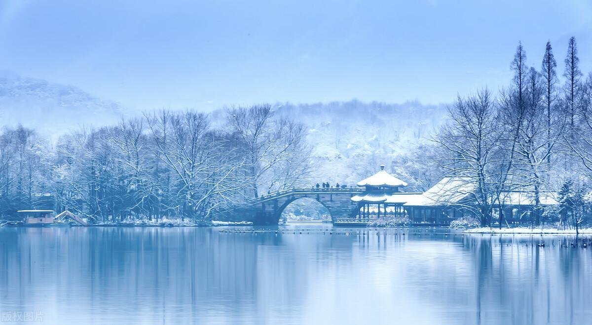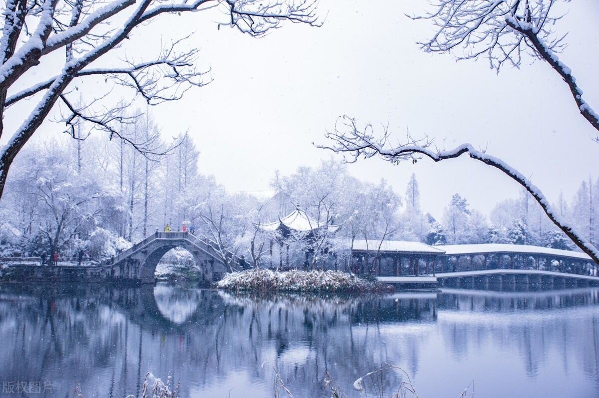江南的雾凇,极具一种山水皆白,沆砀悠远的氛围。大概就如张岱的《湖心亭看雪》中所言“雾凇沆砀,天与云与山与水,上下一白。湖上影子,惟长堤一痕、湖心亭一点、与余舟一芥,舟中人两三粒而已。”