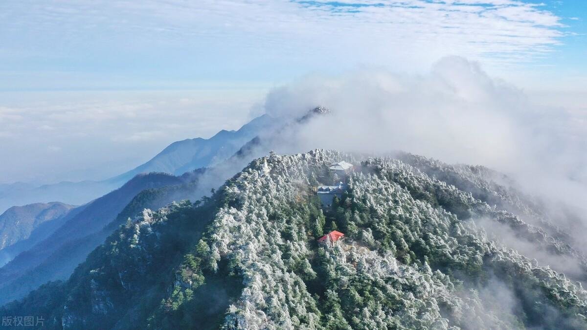 站在峨眉山金顶,看雪色装点漫山遍野,千姿百态的雾凇衬着银装素裹的峨眉山,愈发显得晶莹剔透,恍若梦里秘境。
