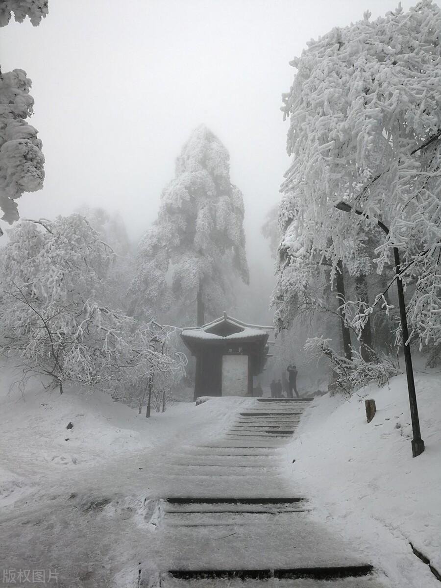 雾凇追随着冰雪的脚步,把庐山化为名副其实的画境,水墨淡彩晕染出的韵致无可比拟。