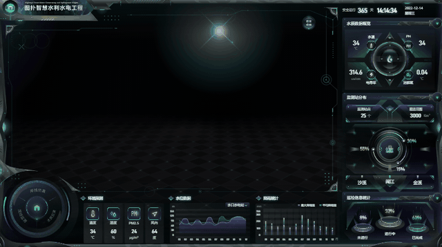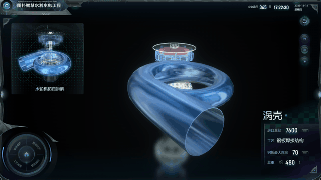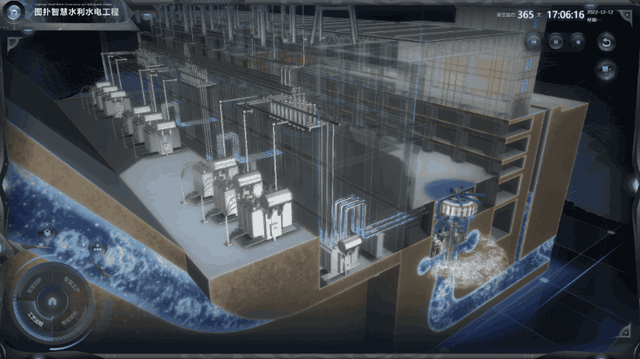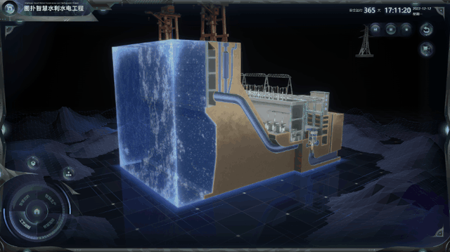水力发电系统主要由压力引水管、水轮机、发电机和尾水管等组成。河川的水经由拦水设施攫取后,经过压力隧道、压力钢管等水路设施送至电厂。利用图扑软件的三维组态还原电力生产过程,监控机组运行状态,提高发电效率。