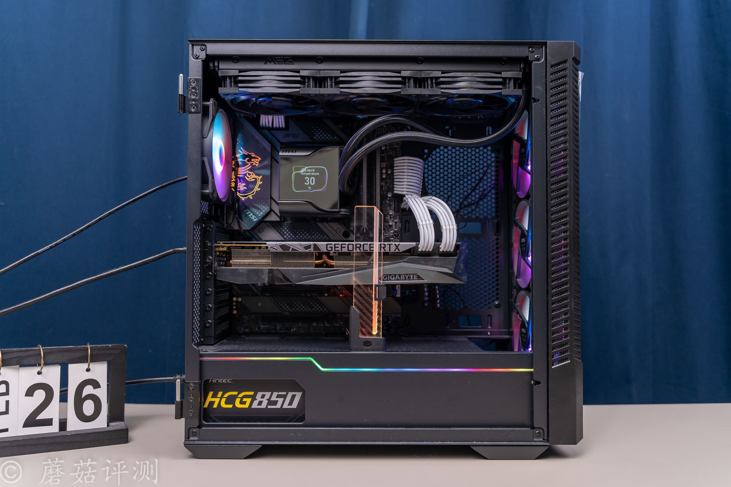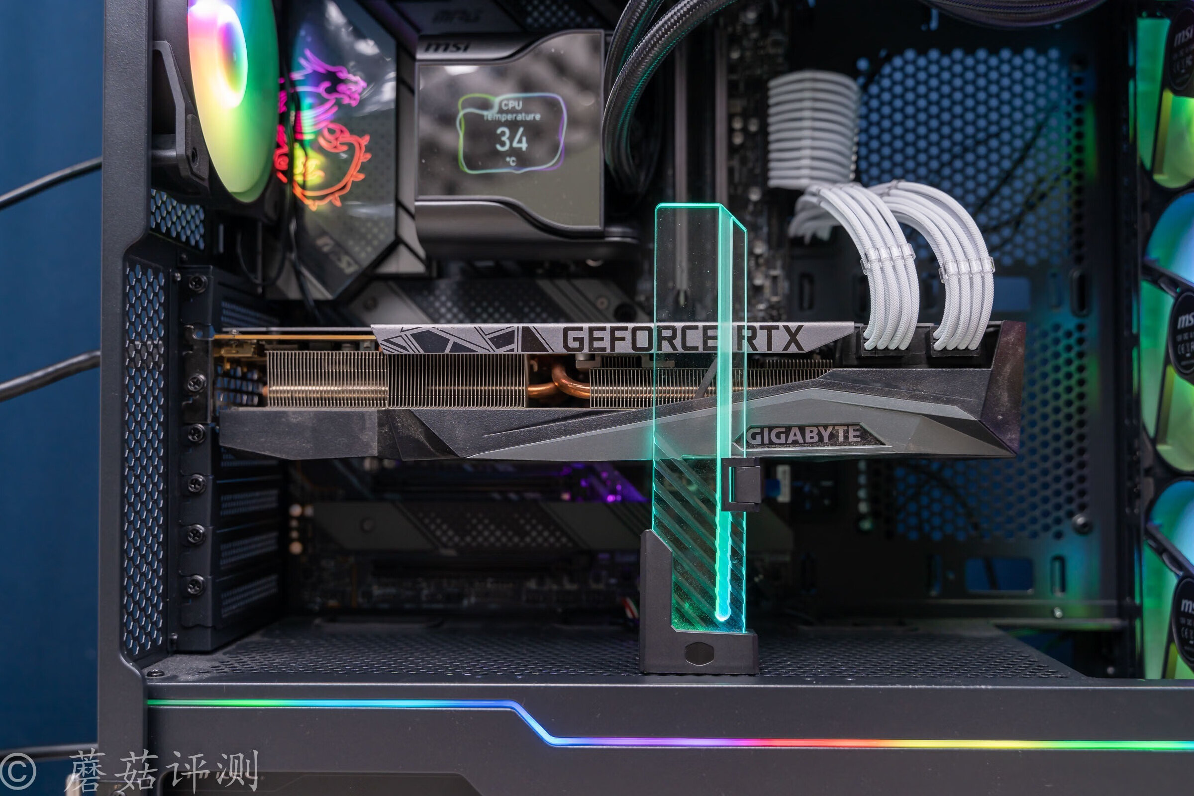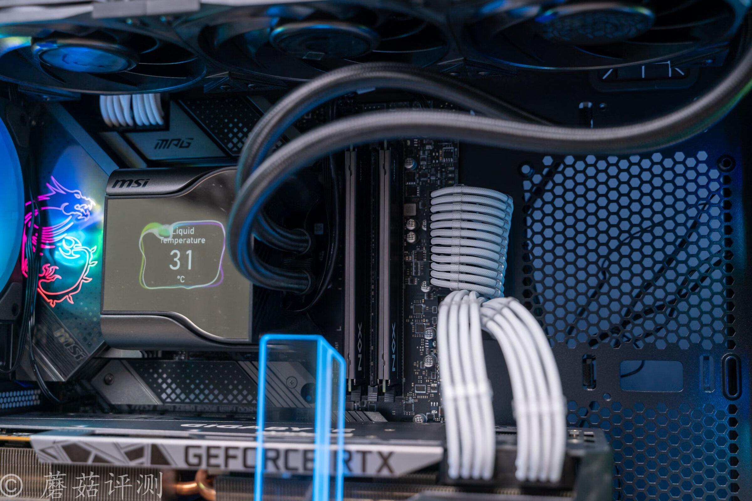 ▼散热用的是微星的战神S360水冷,水冷的水冷头顶部有屏幕,可以显示图片、文字、动图和硬件参数,玩法很多样。