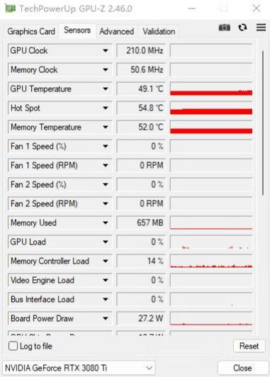▼简单看下GPU-Z,核心是GA102,流处理器10240,显存12GB,颗粒是镁光的GDDR6X,整体的硬件参数很不错。