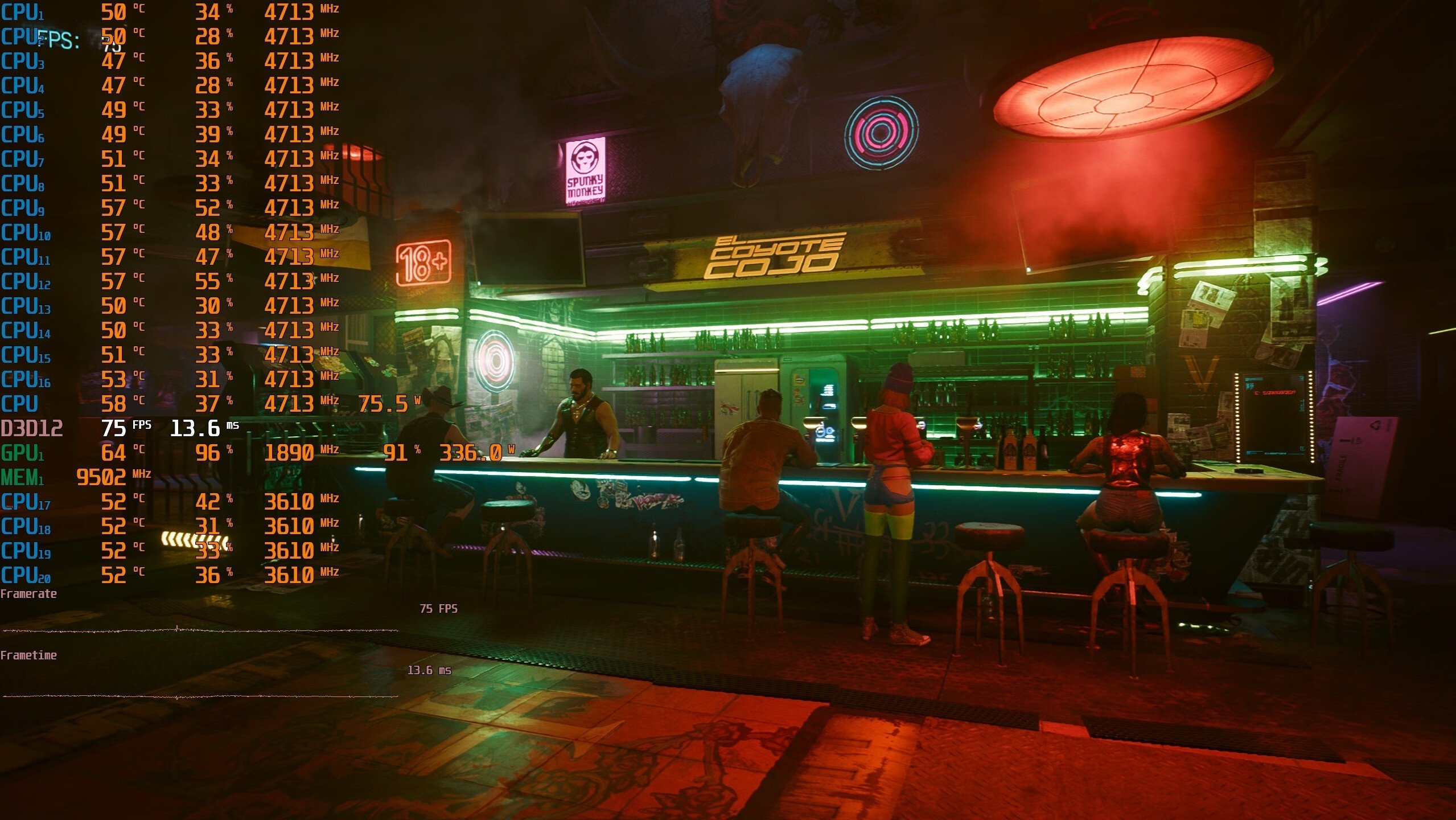 ▼吧台游戏帧数,在75帧左右,挺流畅。
