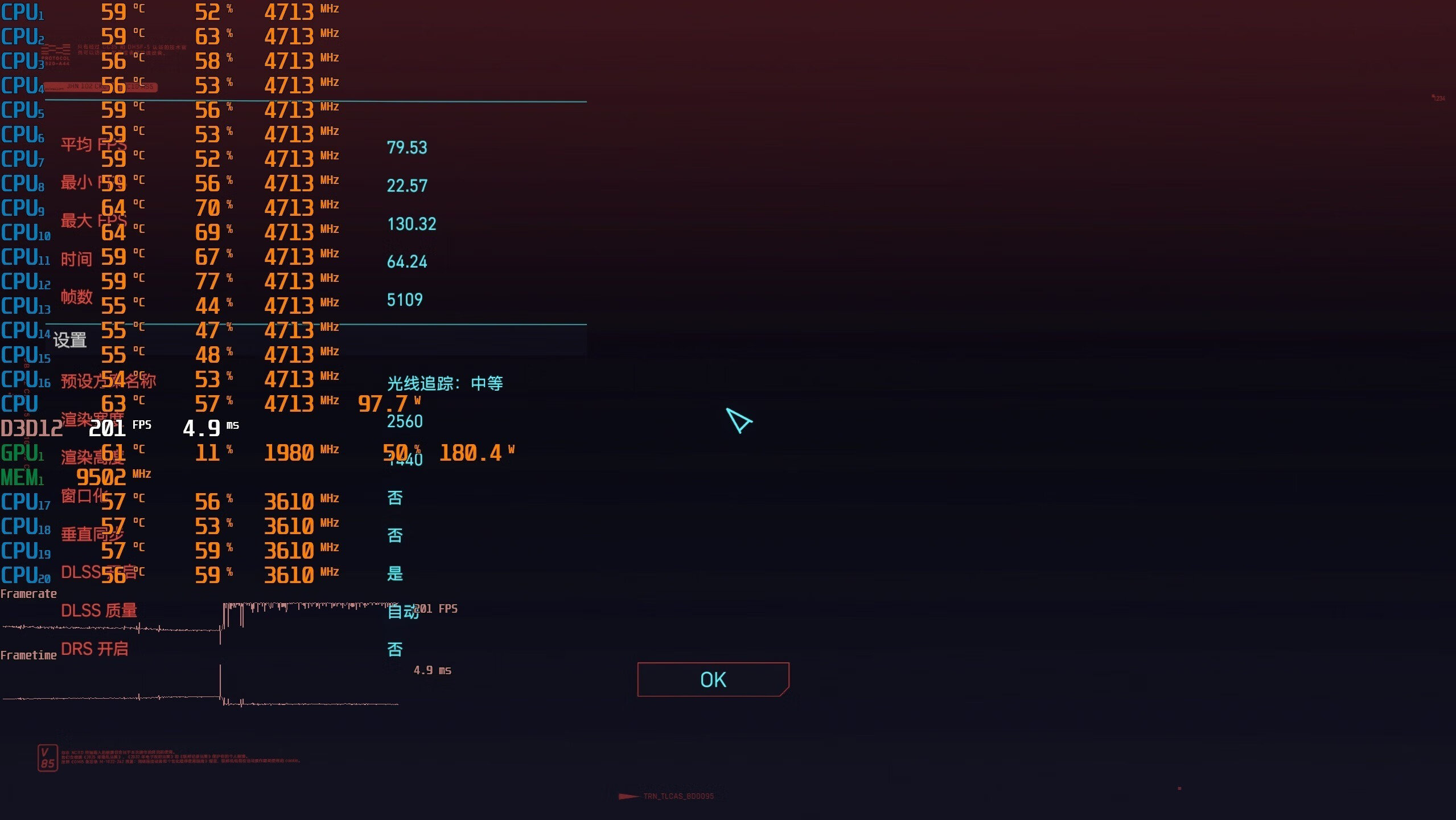 ▼赛博朋克2077,2K分辨率,光追中等特效。