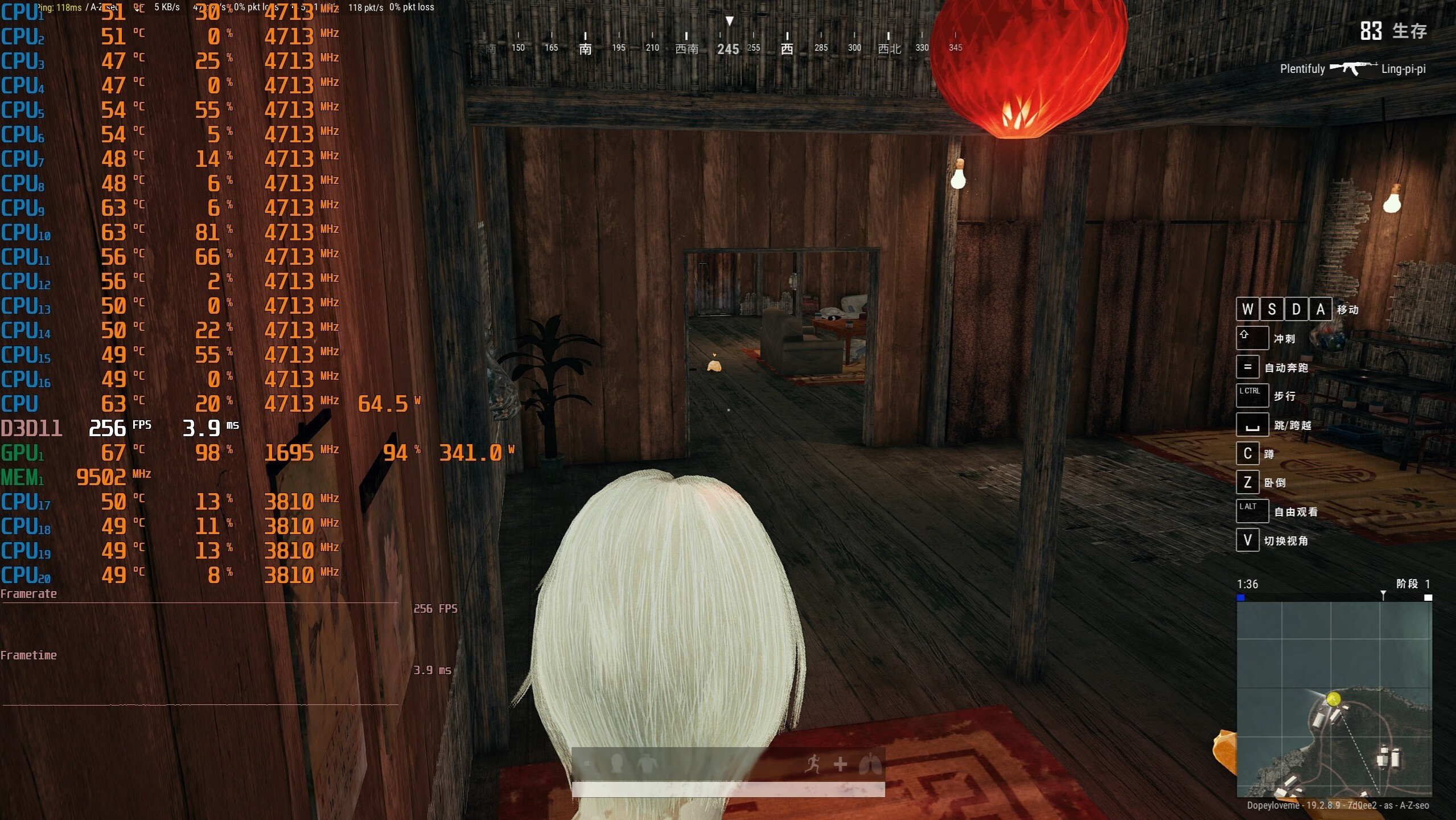 ▼室内游戏帧数在256帧左右,略低一点。