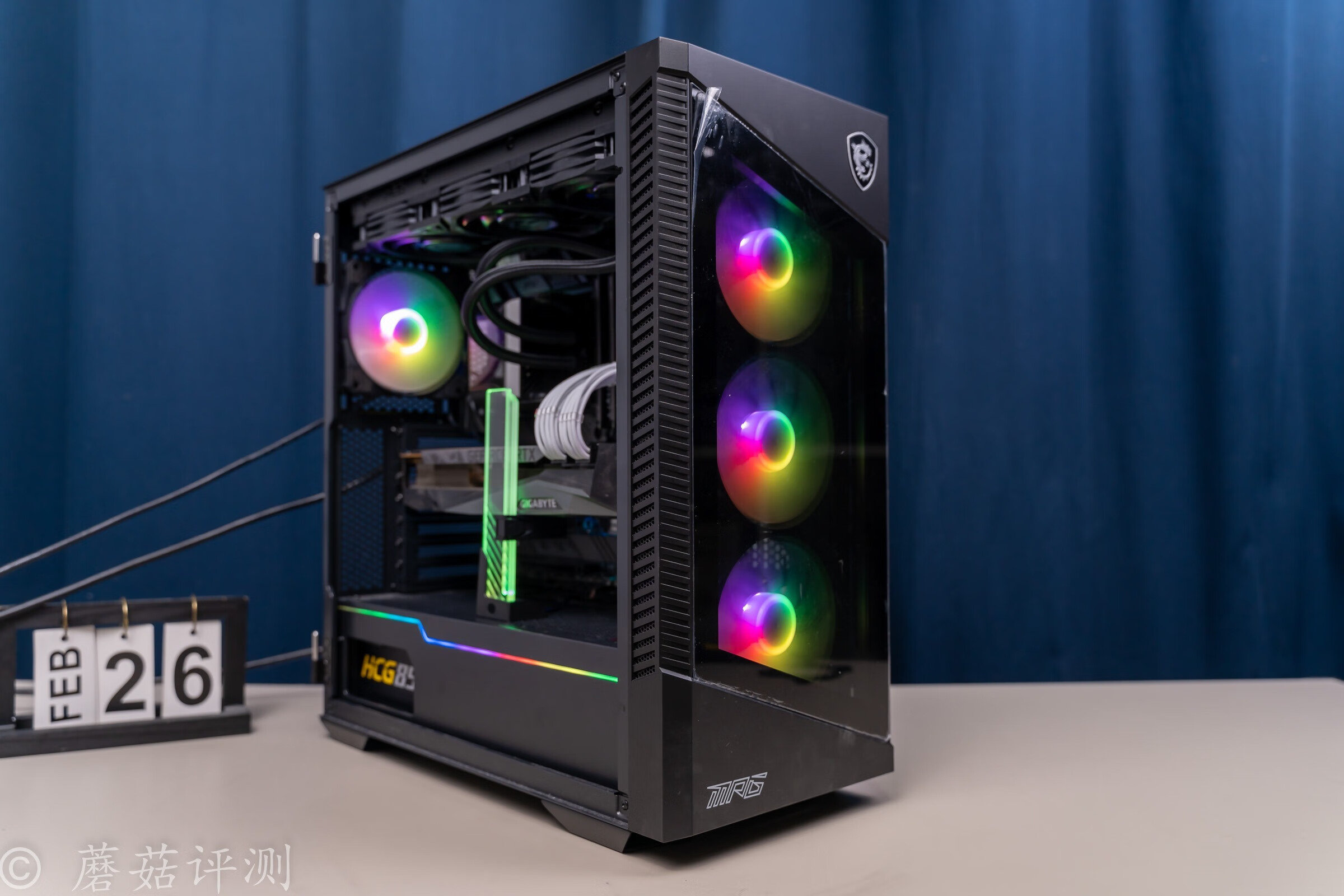 ▼机箱是微星的刀锋100R机箱,机箱的颜值非常漂亮,前面和侧面均有大面积的玻璃侧透设计,另外,机箱前部标配三把支持ARGB灯效的机箱风扇,颜值很漂亮。
