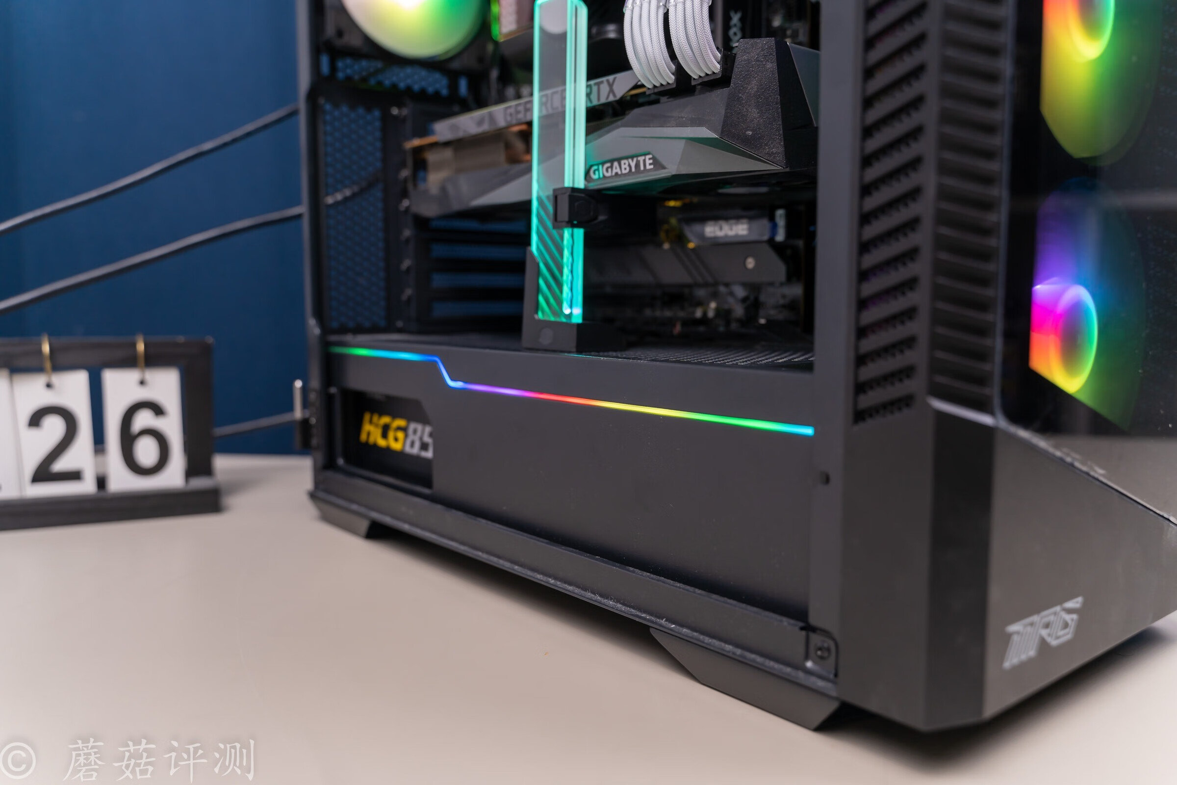 ▼在电源仓侧面的顶部,也有一条RGB灯带,支持ARGB灯效,日常开机的时候看着很舒服。
