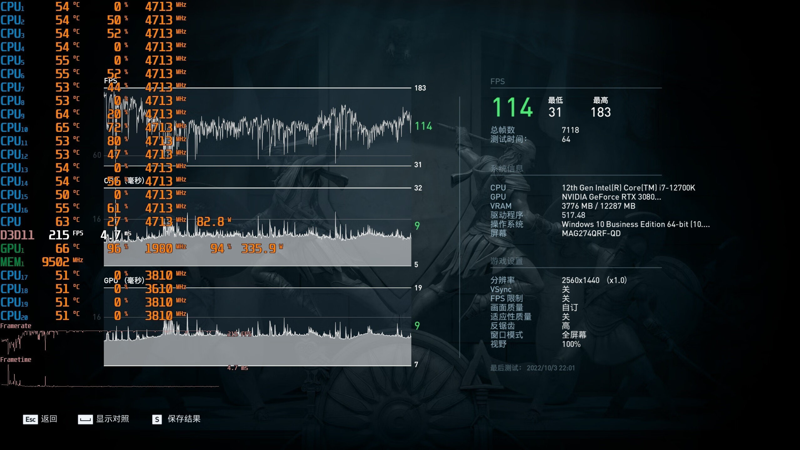 ▼最后的整体平均帧数,在114帧左右,挺流畅的。