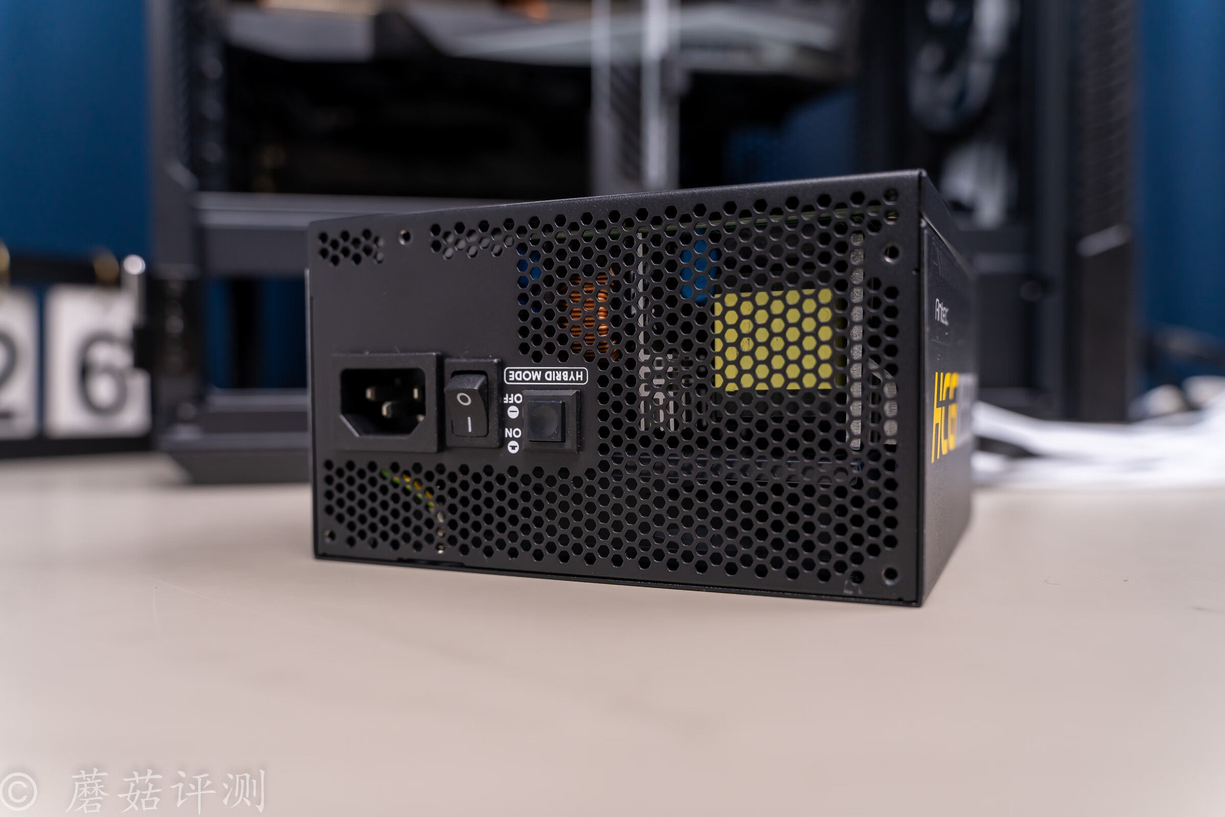 ▼电源的尾部,除了电源插口和开关之外,还有一个风扇运行模式选择按钮,可以在静音模式和温控模式之间根据自己的需求选择,静音模式下,散热风扇低负载停转,进一步降低待机噪音。
