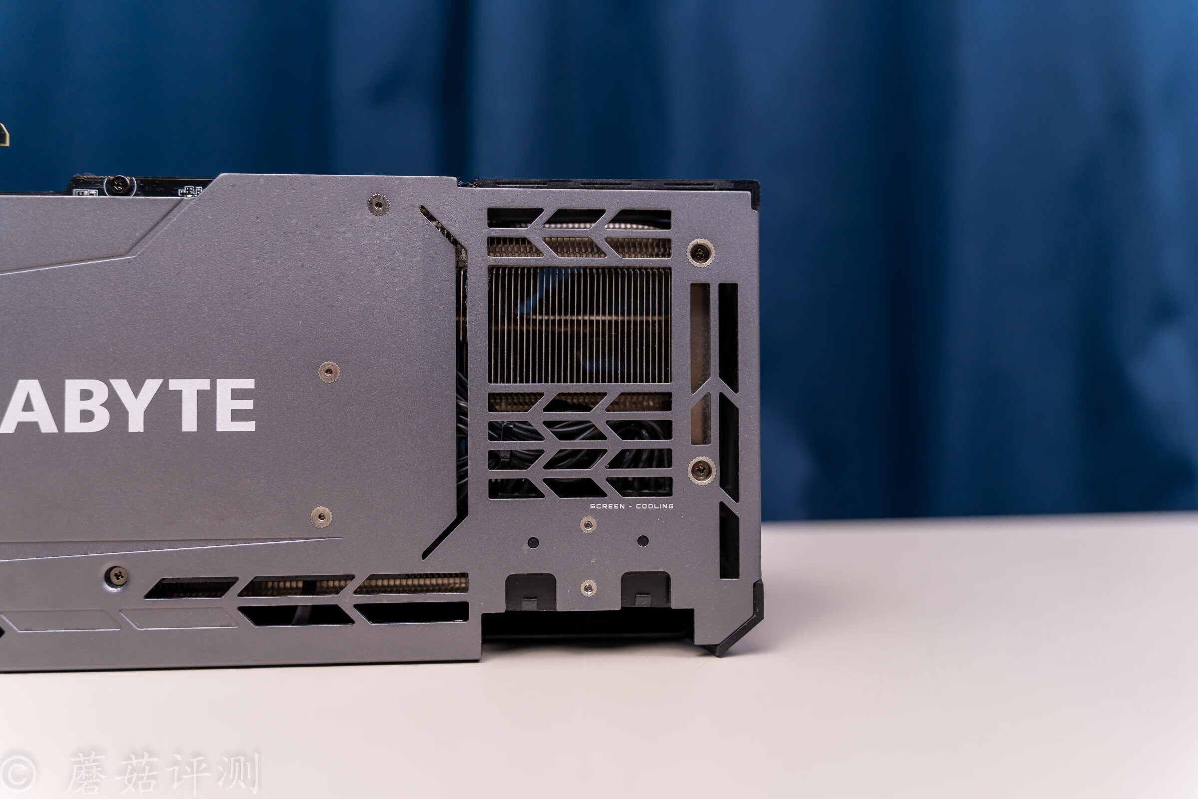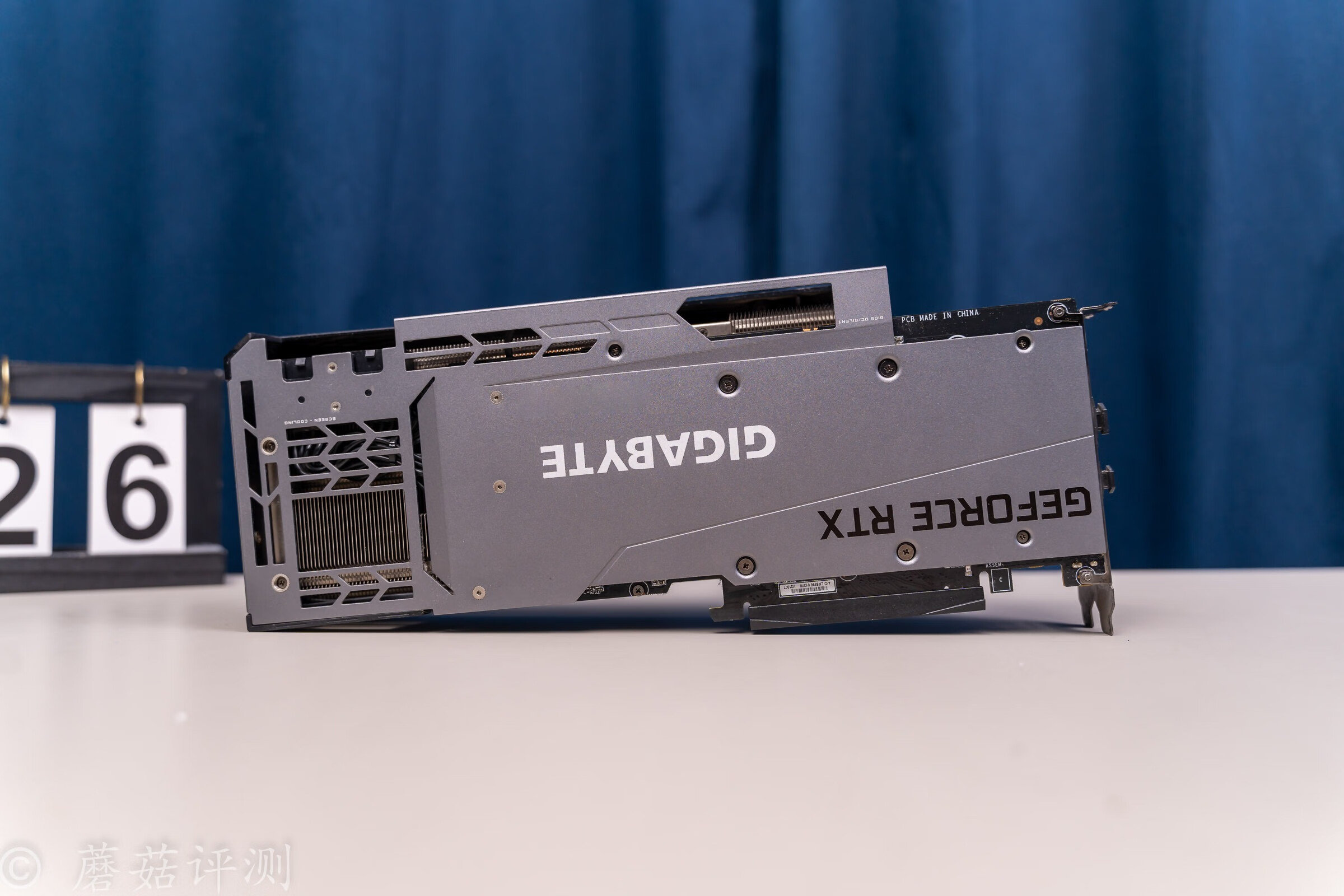 ▼显卡的侧面,金属背板有弯折设计,可以很好的保护中间的散热鳍片。