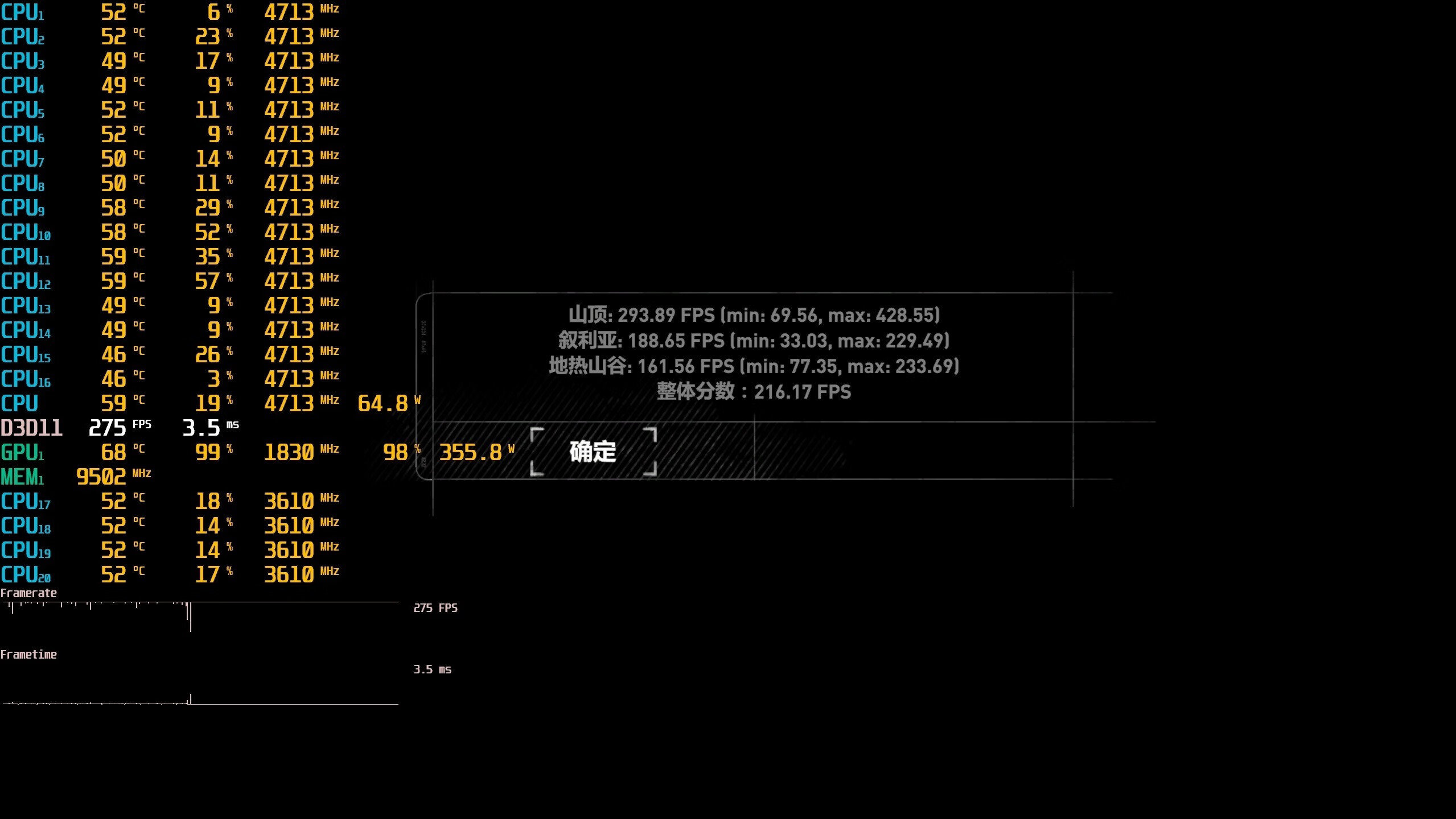 ▼最后的整体平均帧数在216帧左右,非常流畅了。