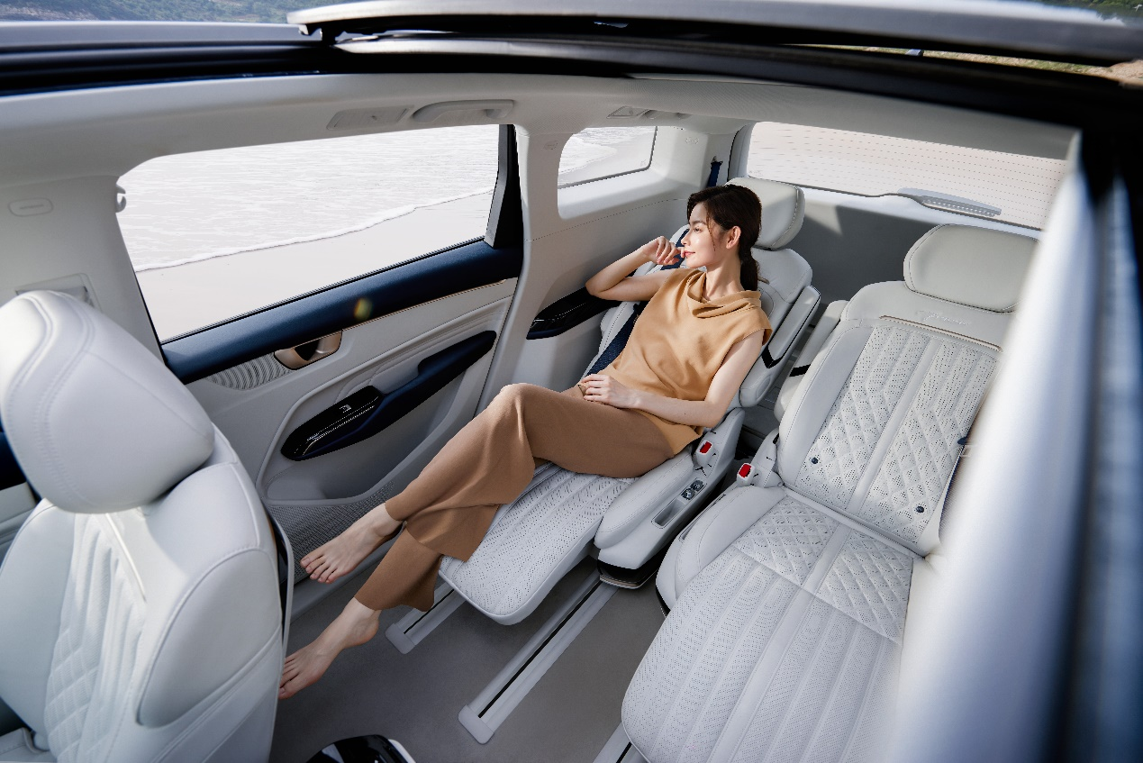 我们在开头说过,五菱凯捷混动铂金版有着“SPA级大四座”之称,那么,这一称号究竟是虚是实?我们一起来看一下。五菱凯捷混动铂金版主打高品质座舱技术,每个座椅都增加了20mm的舒适性海绵层,十分符合人体工程学的设计,坐上去柔软舒适,如沐云中。值得一提的是,这款车的第二排座椅不仅长达290mm,能打开72度的电动腿托,更拥有高达到180度的平躺设计。对于多娃家庭来说,这一配置不仅可以让孩子与家人拥有SPA级的乘坐享受,还可以在长途出行时效缓解旅途的疲劳。