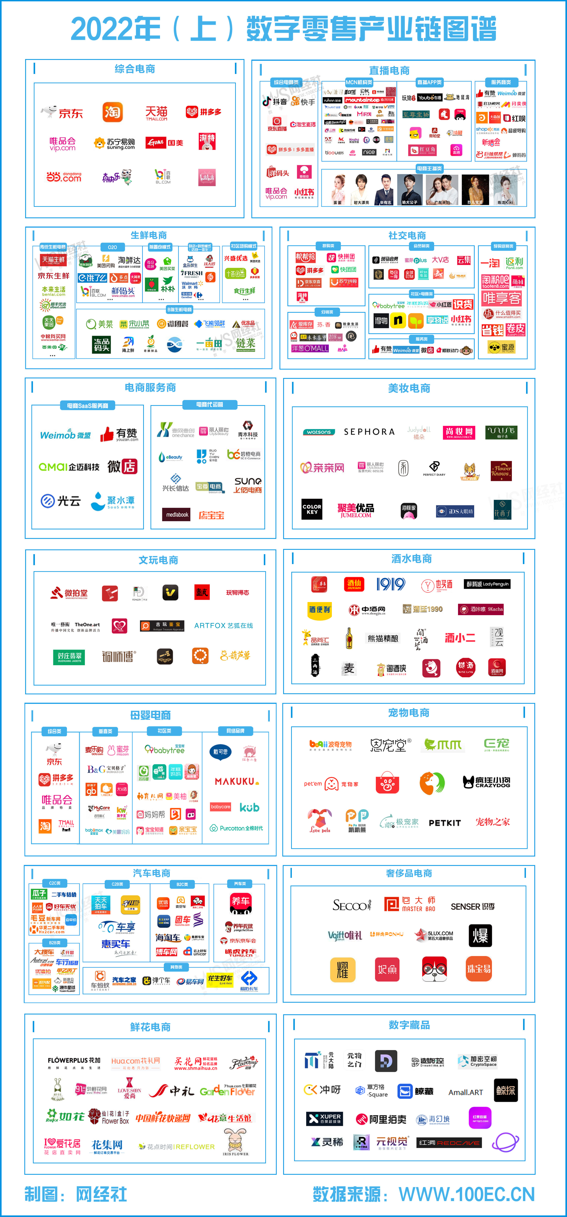 (3)生鲜电商:天猫生鲜、京东生鲜、本来生活、顺丰优选、京东到家、美团闪购、淘鲜达、多点、叮咚买菜、朴朴超市、美团买菜、盒马鲜生、多多买菜、美团优选等;