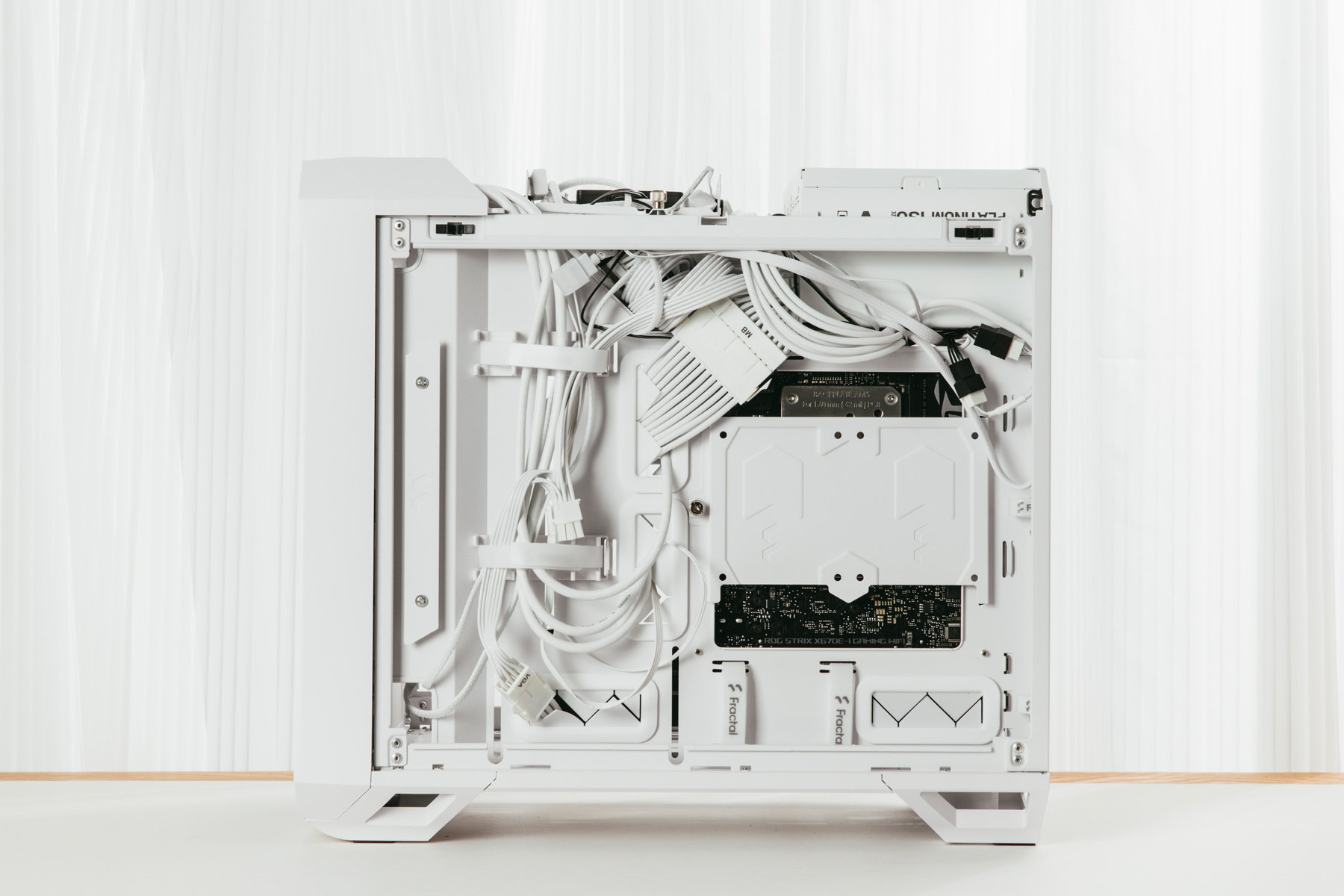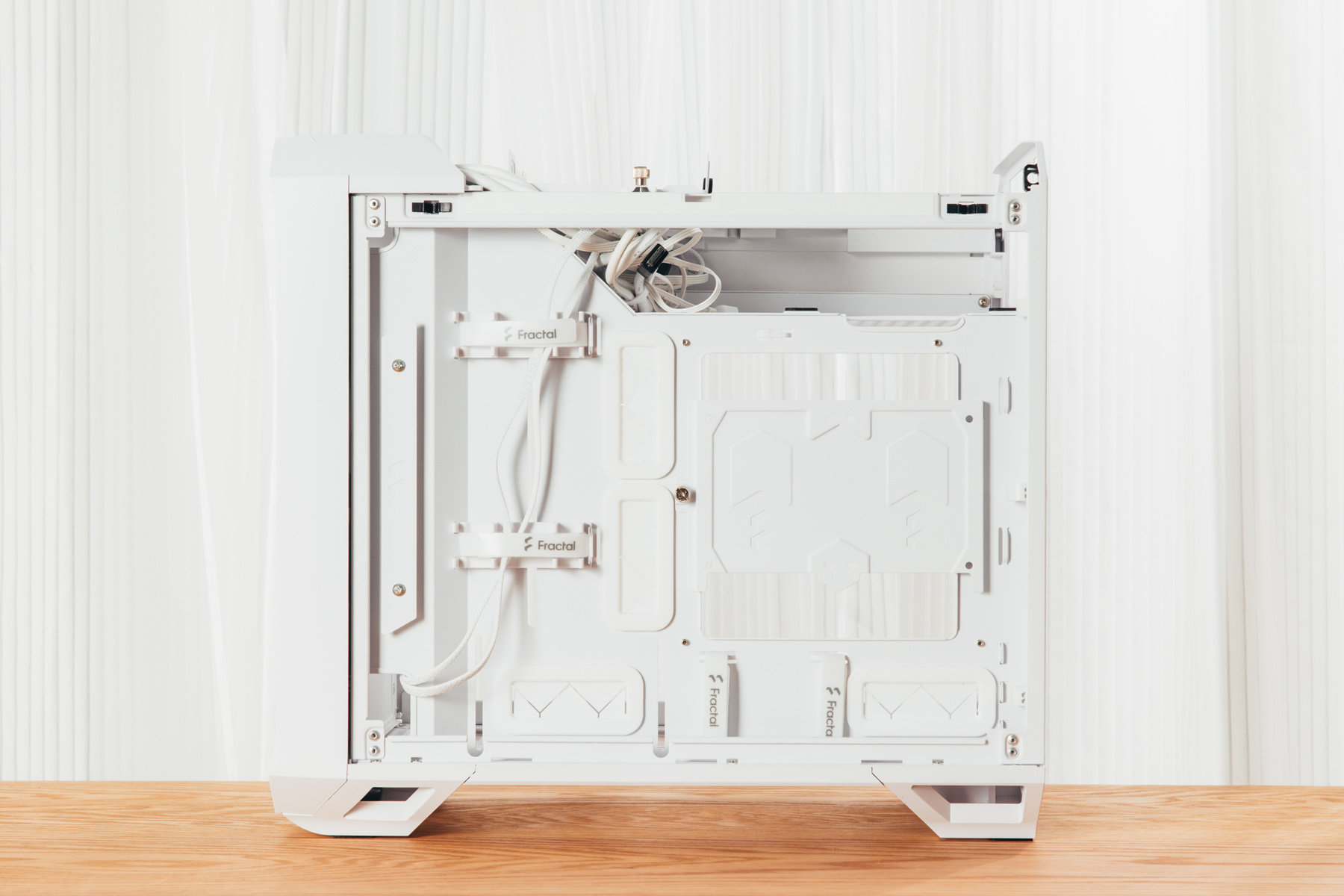 侧面一如既往自带了很多理线设计,包含了理线架和魔术贴,均为纯白设计,理线轻松。
