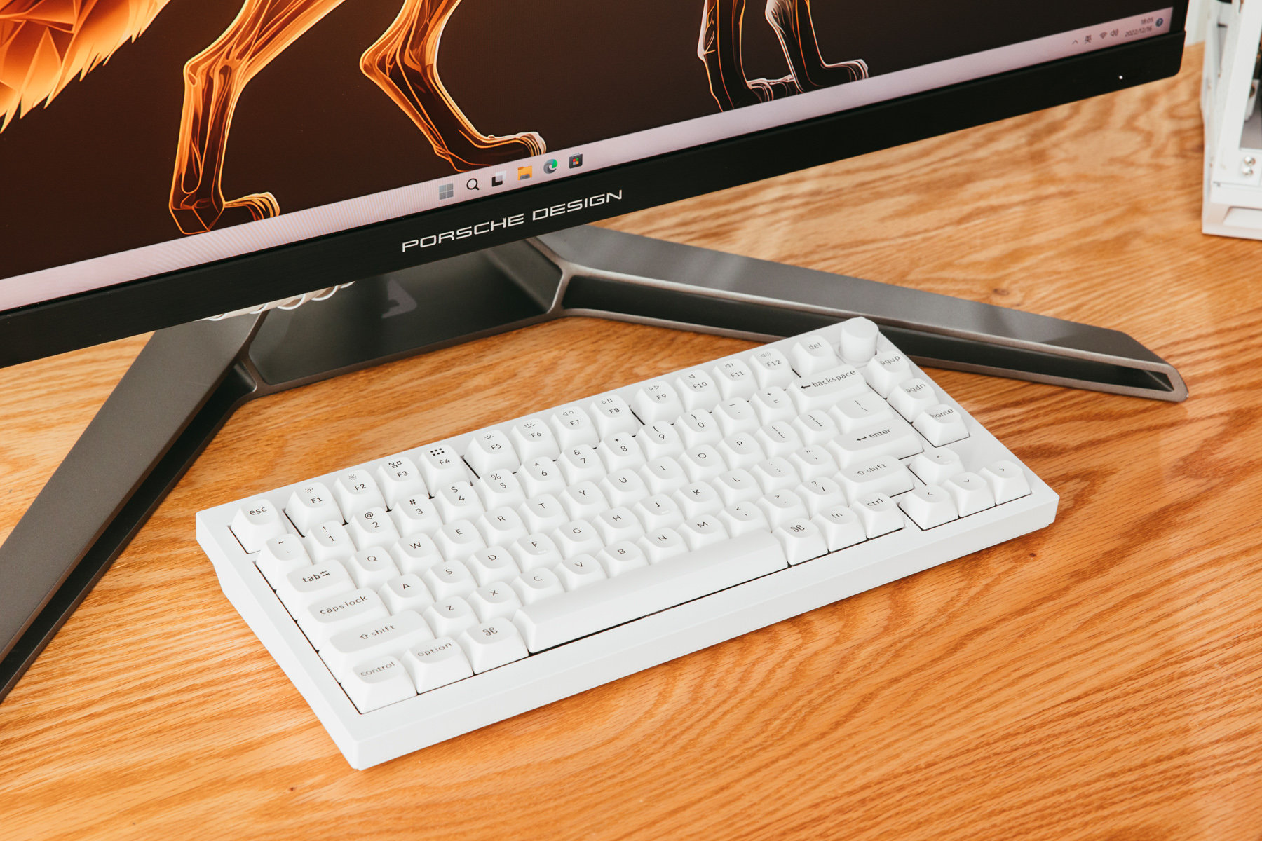 这次装机顺带做了个简单的小桌搭,键盘来自keychron家的Q1,颜色也是少见的白色。