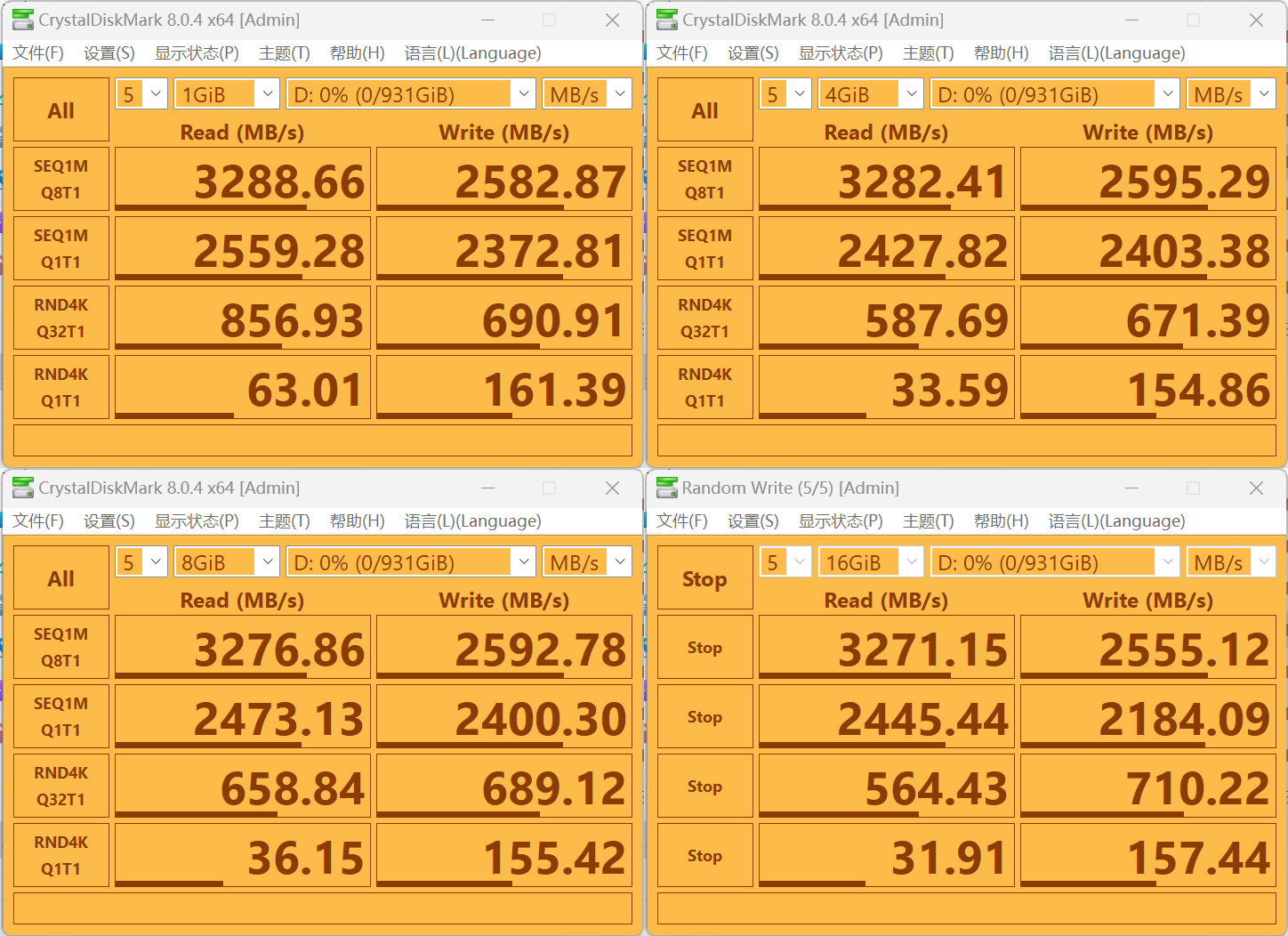西部数据WD BLUE SN570 1T固态测试,顺序读写成绩趋向于3280MB和2550MB每秒,TxBENCH中测试读写分别为3285和2941MB每秒。