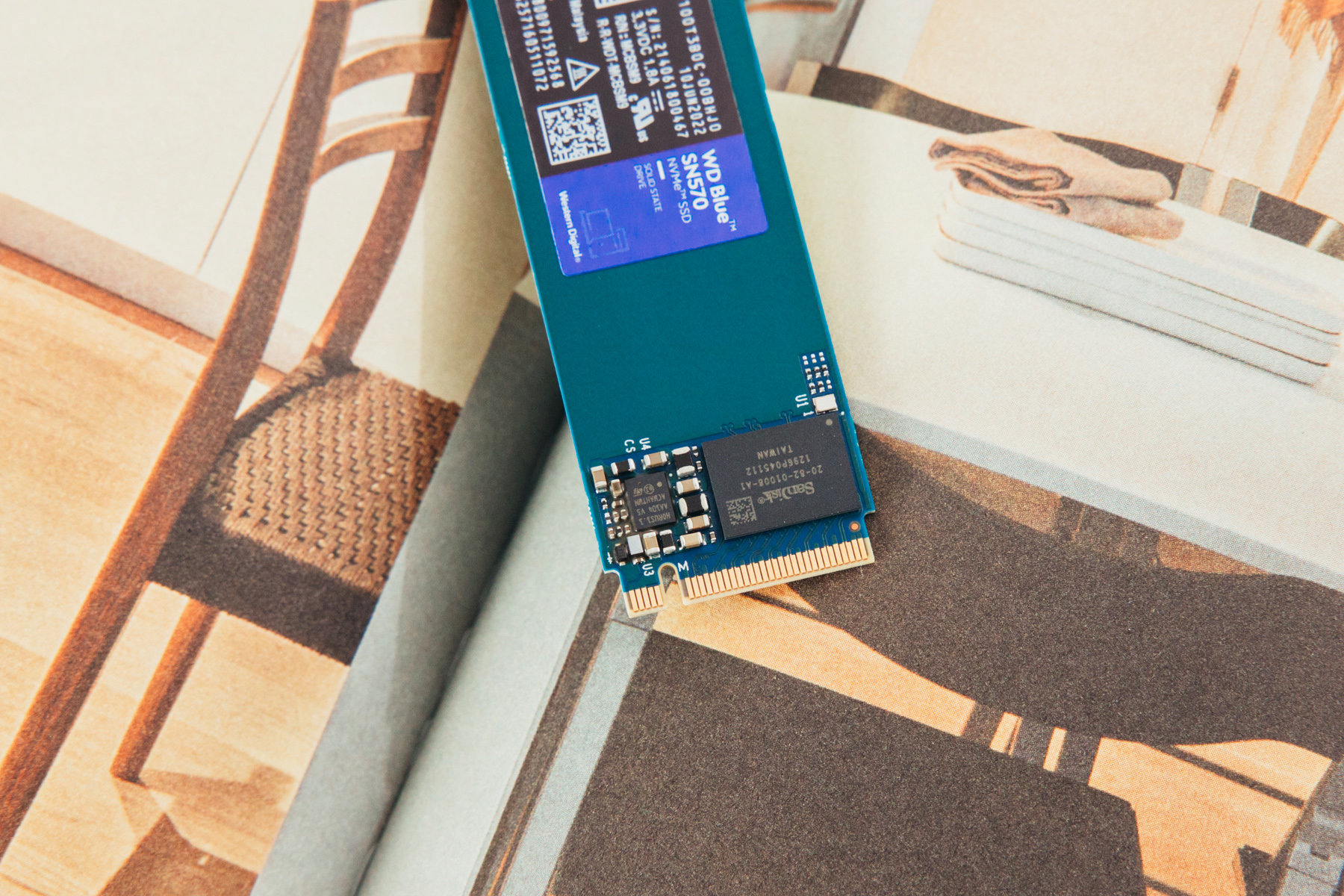 固态这次选用了两块,来自西部数据的WD_BLACK SN850X 1T和WD BLUE SN570 1T,前者是目前西部数据黑盘PCIe4.0旗舰型号,后者则是蓝盘的PCIe3.0旗舰型号,属于最强蓝盘。