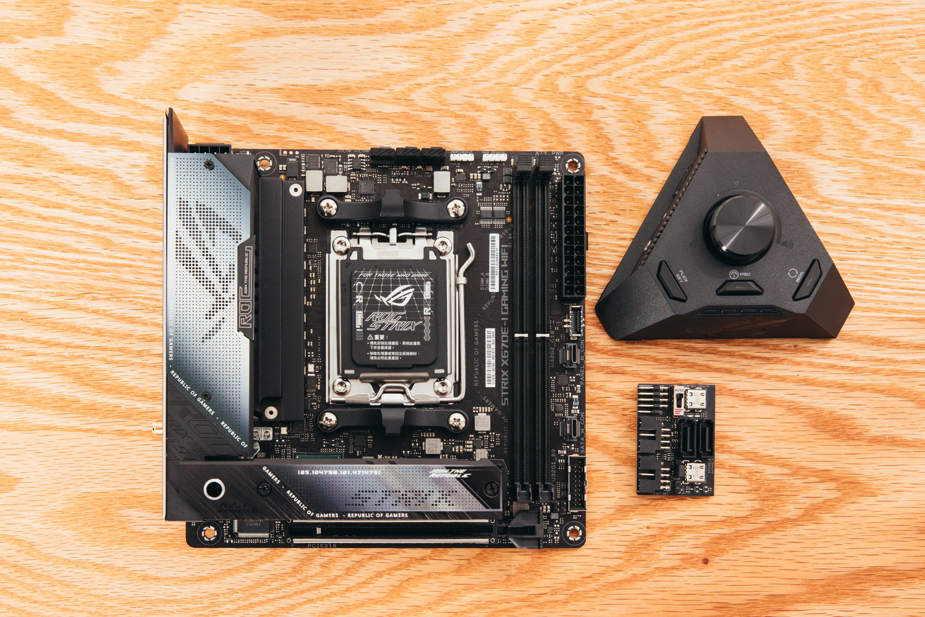 主板来自华硕ROG STRIX X670E-I 主板,也是目前唯一的旗舰ITX规格主板。