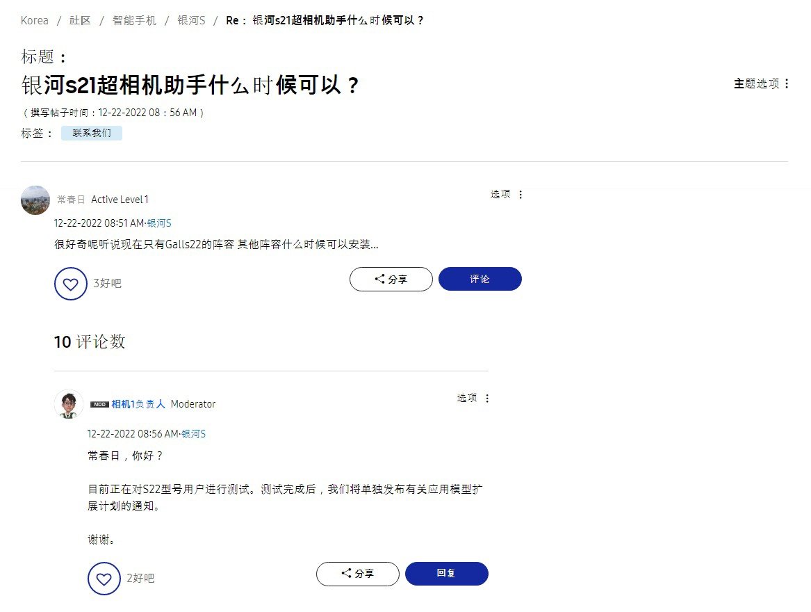 IT之家 12 月 27 日消息,根据三星韩国社区上的一则帖子,三星正努力向更多机型开放 Camera Assistant 应用,并表示会在近期公布扩展的设备清单和扩展时间表。该应用目前仅限于 Galaxy S22 系列机型。