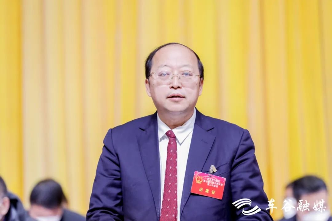 唐超代表汉南区人民政府作《政府工作报告》。