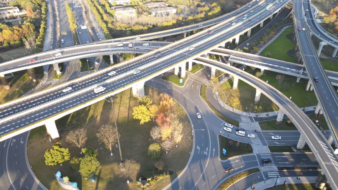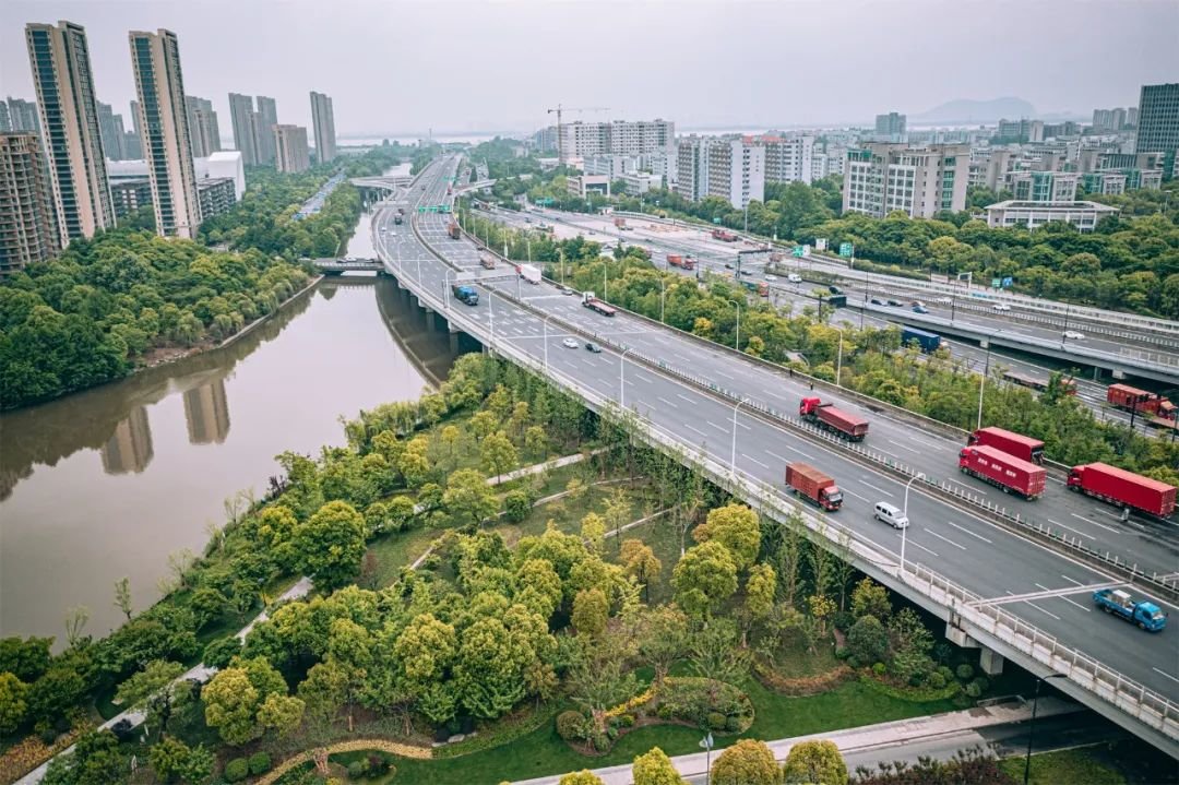 下沙入城口: 提升改造后,不仅有效提升了城市道路畅通水平,而且实现了“景观带、风景线、交通线”的有机统一,展示出下沙互通“交通枢纽”和“城市门面”的双重担当。