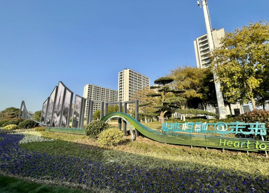 五常入城口: 以梳理、补植、重新打造等手法,对入城口周边的绿化长势欠佳、环境不雅路段进行了整治提升,提取了湿地、水、科技元素,融入亚运基因,通过让古今文化在这里交相辉映。