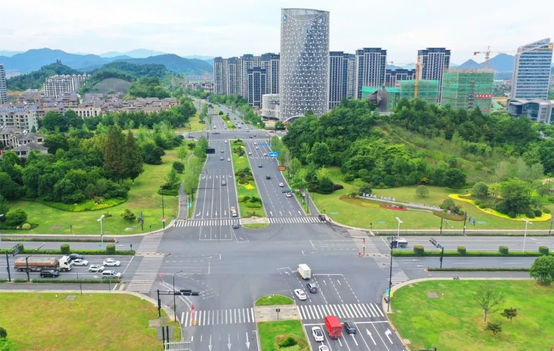 杭州北入城口:整治改造后的入城口绿意盎然、整洁大气,极好地体现了杭州精致秀丽的城市风貌和人文特色,为提升城市品质增添靓丽笔触。