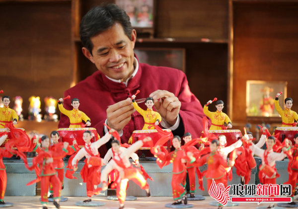 12月27日,临沂市沂南县红石寨非物质文化遗产博物馆的民间艺人左安胜在创作面塑作品。