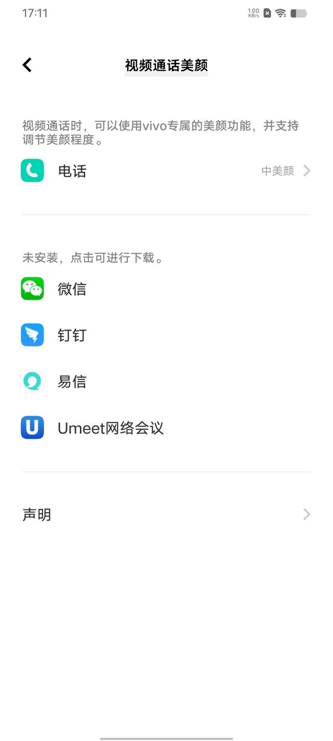 前置镜头支持第三方(当前支持微信、钉钉、易信、Umeet 四个APP)美颜,拥有低、中、高三档可选,美颜相机进行视频聊天/会议时,会优化面部细节,适合居家办公人士使用。室内光线不佳或夜间自拍时,前置相机,可以手动开启屏幕柔光环。区别于全屏幕补光,屏幕柔光环光线柔和,更好地提升人脸亮度。满足更多场景下的拍摄需求,显著提升画面清晰度。