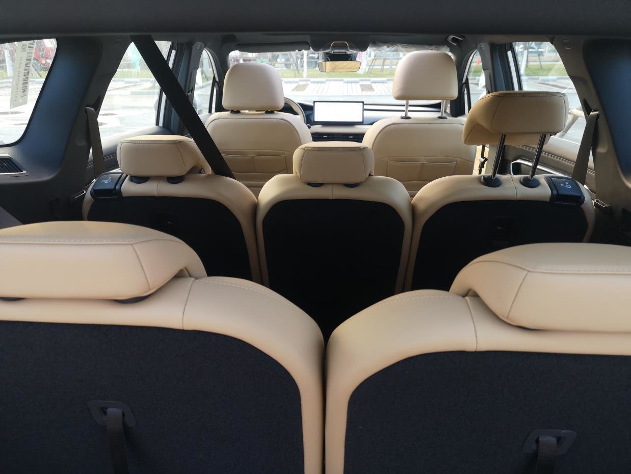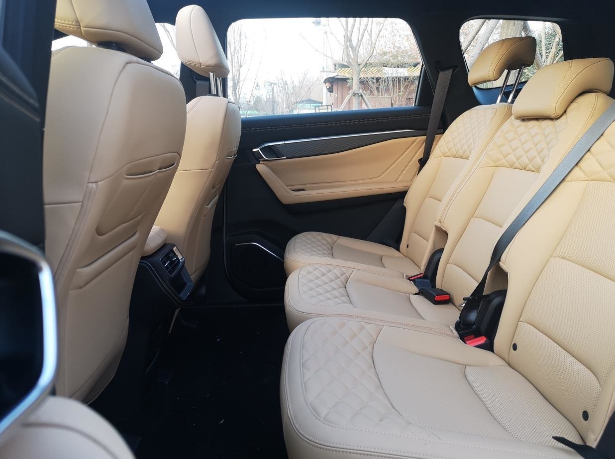 豪越L全系标配10.25英寸的液晶仪表+12.3英寸的中控大屏,内置吉利银河OS系统,并提供4G、OTA升级、华为Hi-car手机互联功能,娱乐方面满足基本需求。豪越L长宽高分别为4860mm、1910mm、1770mm,轴距2825mm,相较豪越,车身更长,轴距也加长了10mm。乘坐空间是其主要亮点,7个座椅全部独立,中间的三个座椅尺寸接近,中间乘坐感受要好于一般的通体式后排,第二排中间的座位也可以收起来,作为小桌板使用,收起第三排后,后备箱空间拓展至628L,装载能力强。尊贵型比入门版多了电动尾后备箱、主驾座椅电动调节。