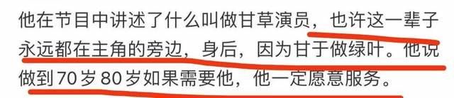 节目中,车保罗表示,自己属于“甘草演员”,心甘情愿为他人做绿叶,倘若等他去七八十岁的时候,有个合适的角色邀请他出演,他也会义无反顾地去参演,一切只因对演员这个职业的热爱。